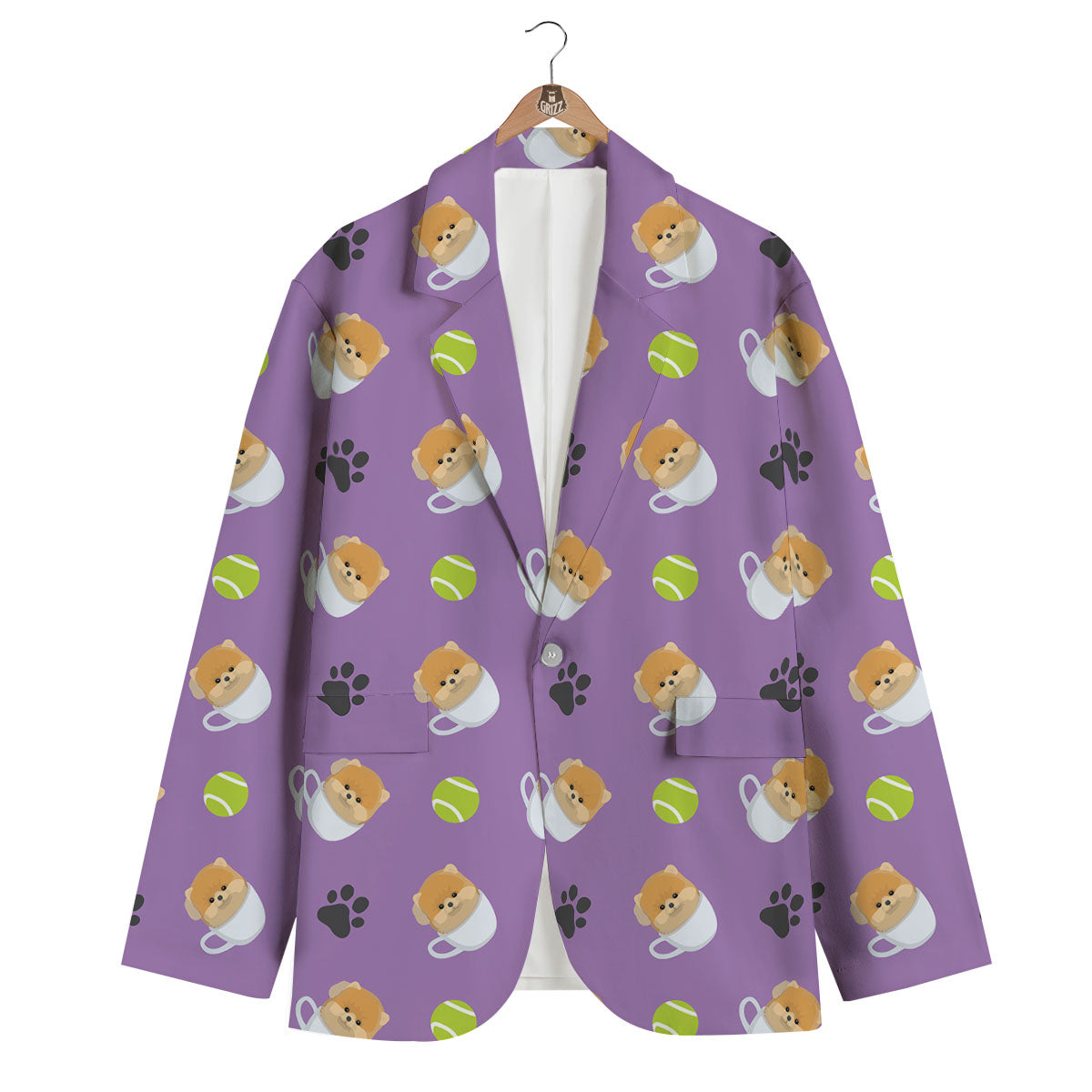 Tea Cup Pomeranian Print Pattern Men's Blazer