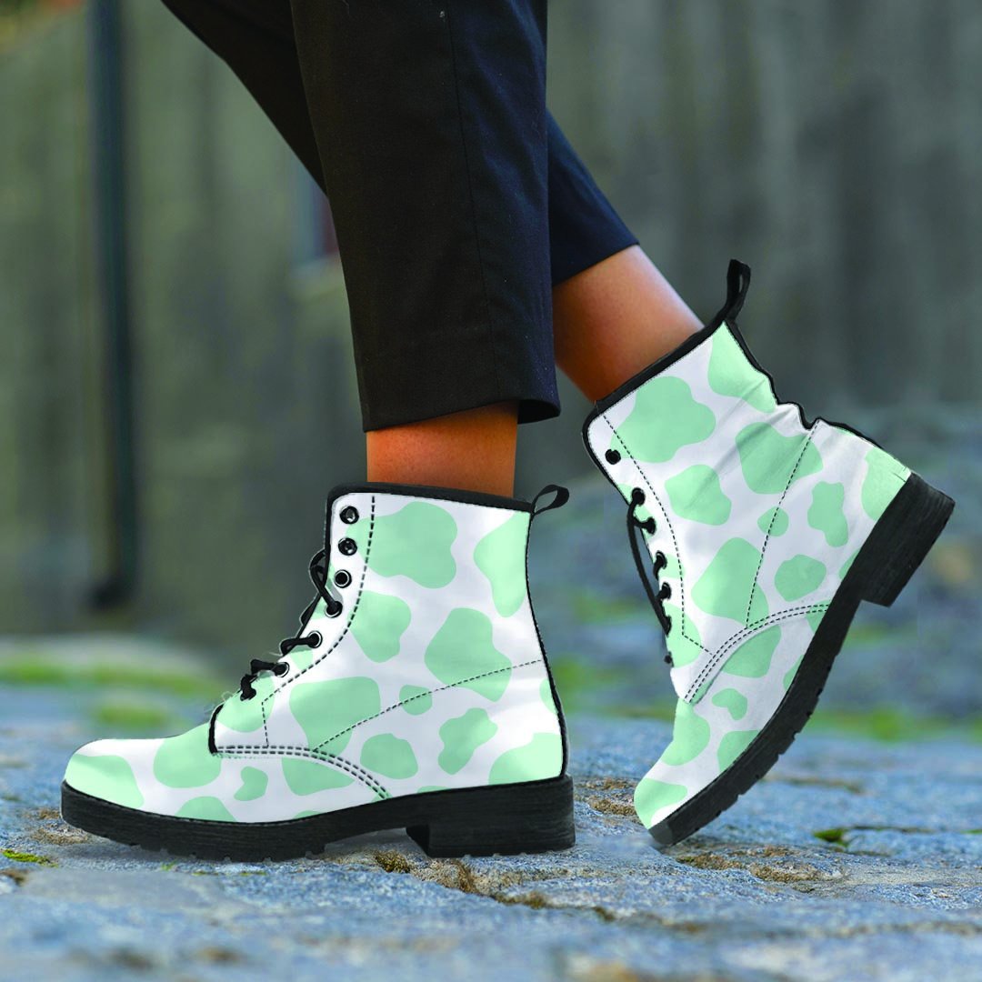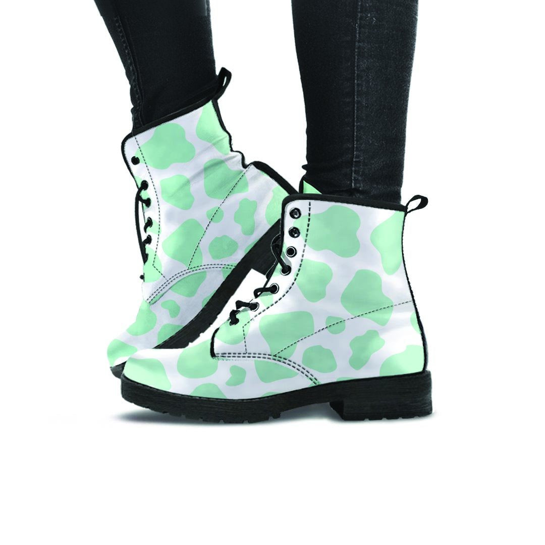 Teal And White Cow Print Women's Boots