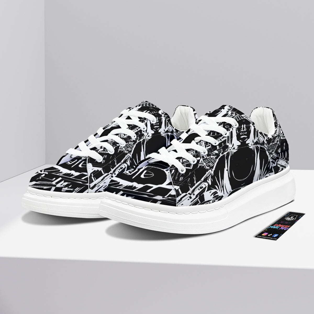 Looking for a unique Platform Shoes ? Check out our Technical Buddha Black And White Print Platform Shoes at Grizzshopping. Our Platform Shoes are handcrafted to the highest quality standards that custom made for you