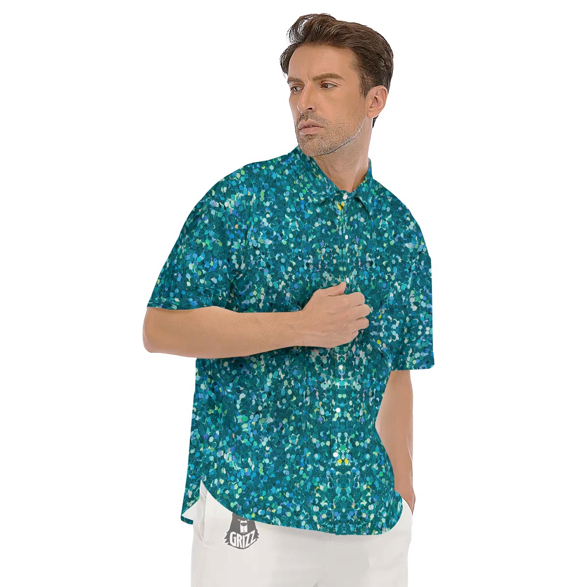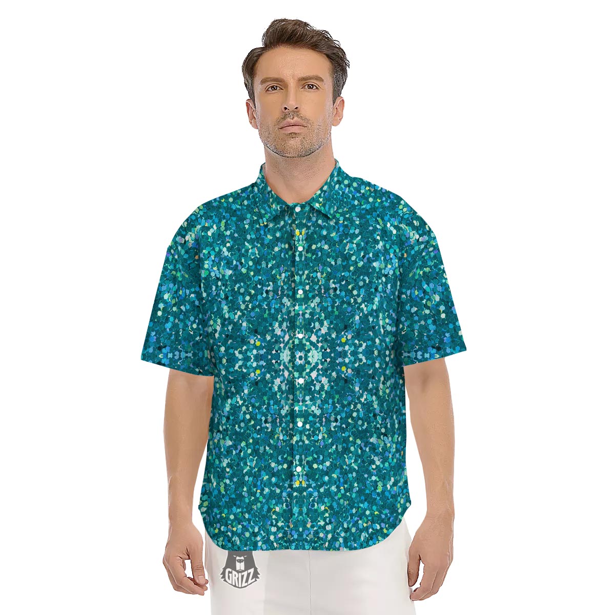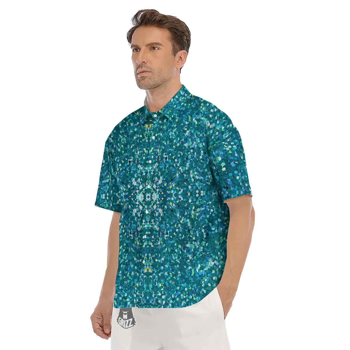 Looking for a unique Short Sleeve Shirt? Check out our Artwork Teal Glitter Print Pattern Men's Short Sleeve Shirts at Grizzshopping. Our Short Sleeve Shirt are handcrafted to the highest quality standards that custom made for you