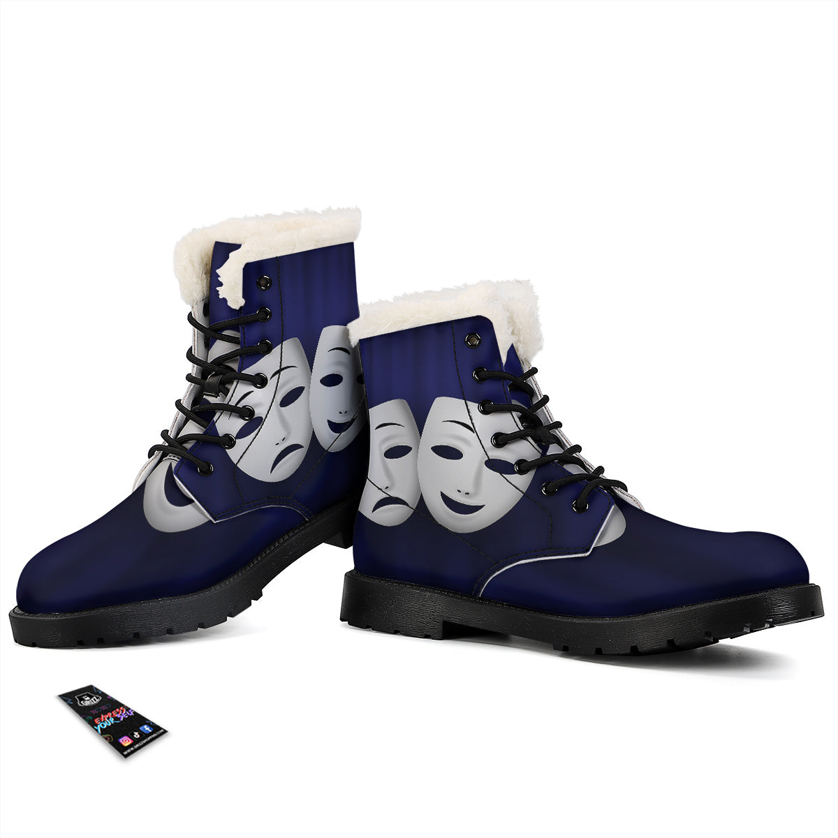 Theater Masks Tragedy And Comedy Print Winter Boots