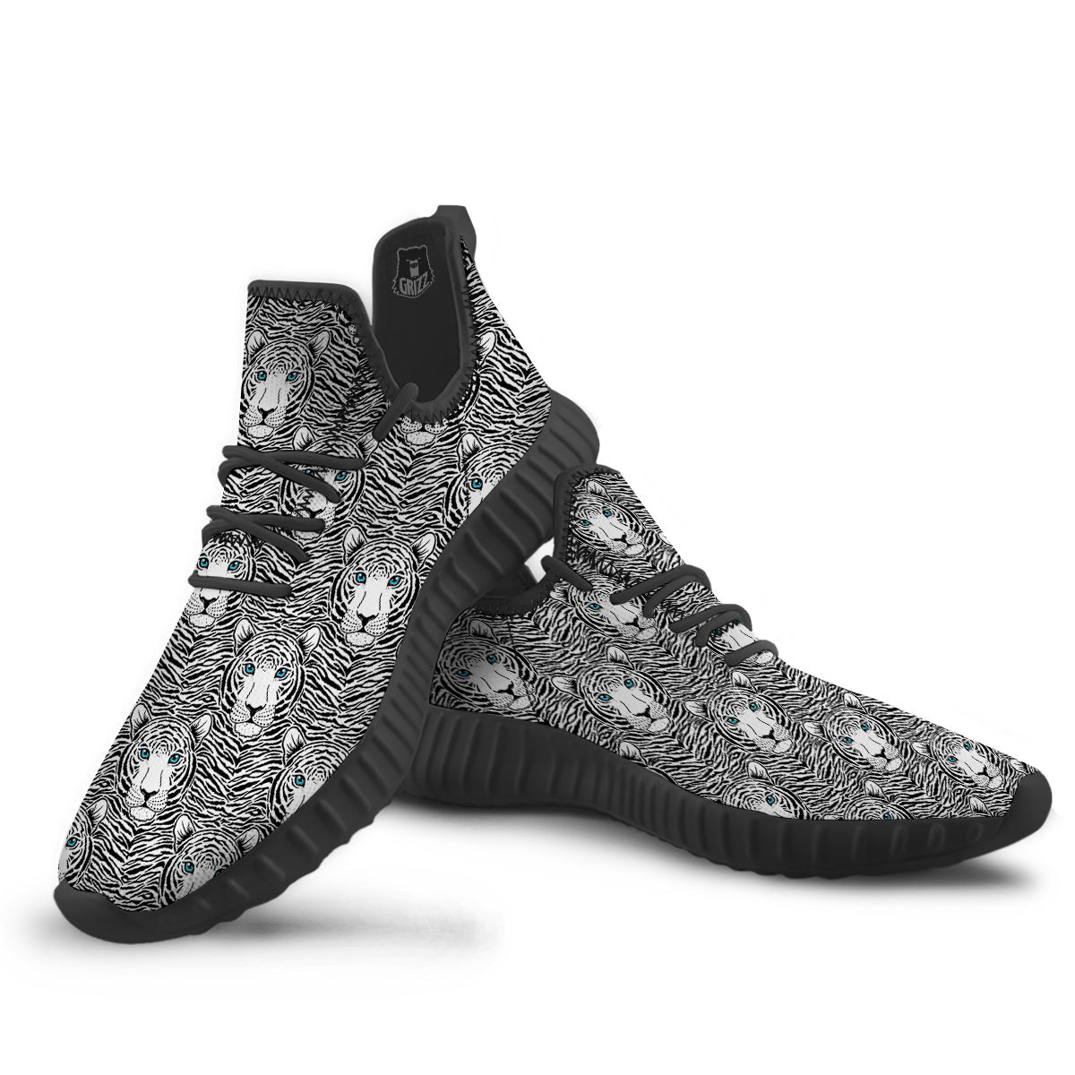 Tiger Head Striped Print Pattern Black Walking Shoes