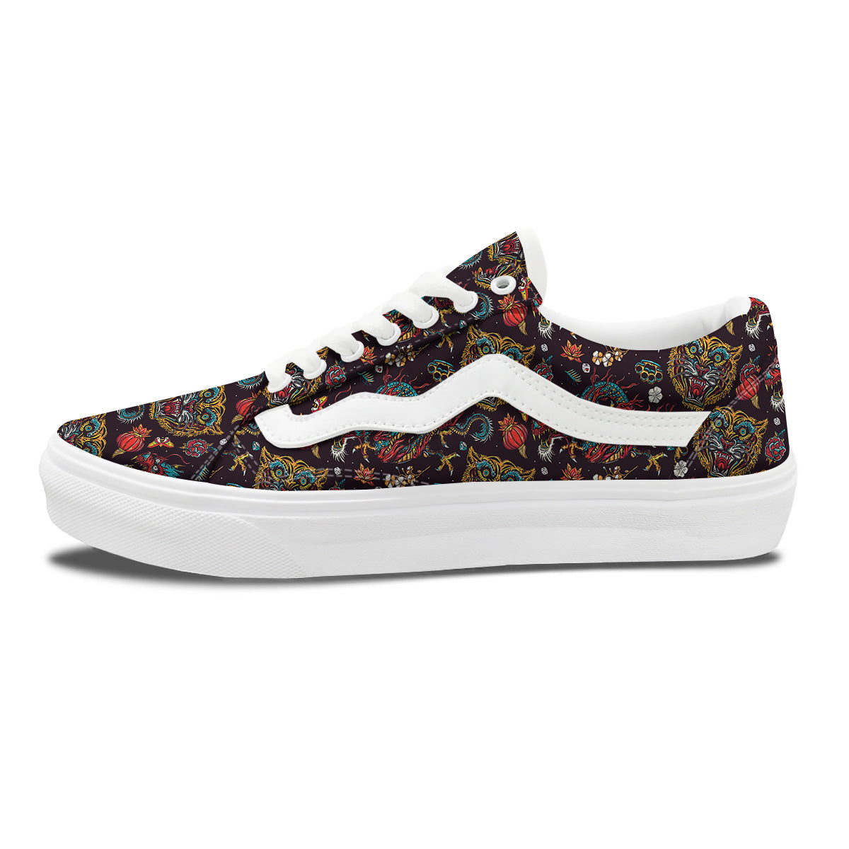 Tigers And Dragons Colorful Tattoo Print Pattern Skate Shoes