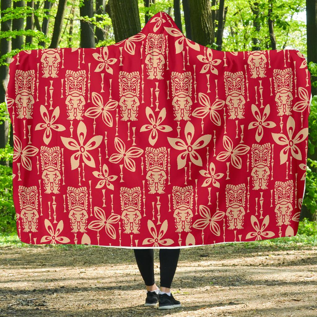 Tiki Hawaiian Pattern Print Hooded Blanket