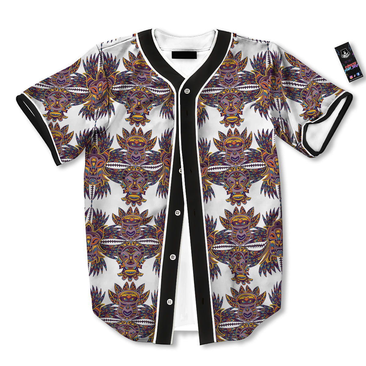 Tiki Mask Ornament Print Pattern Baseball Jersey