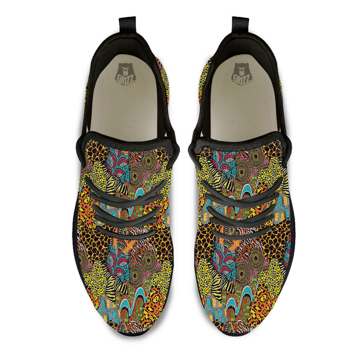 Traditional African And Wild Animal Skins Print Pattern Black Athletic Shoes