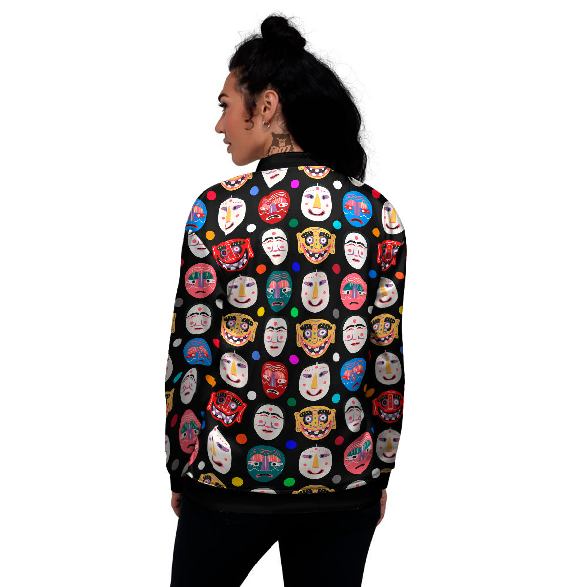 Traditional Korean Masks Print Pattern Women's Bomber Jacket