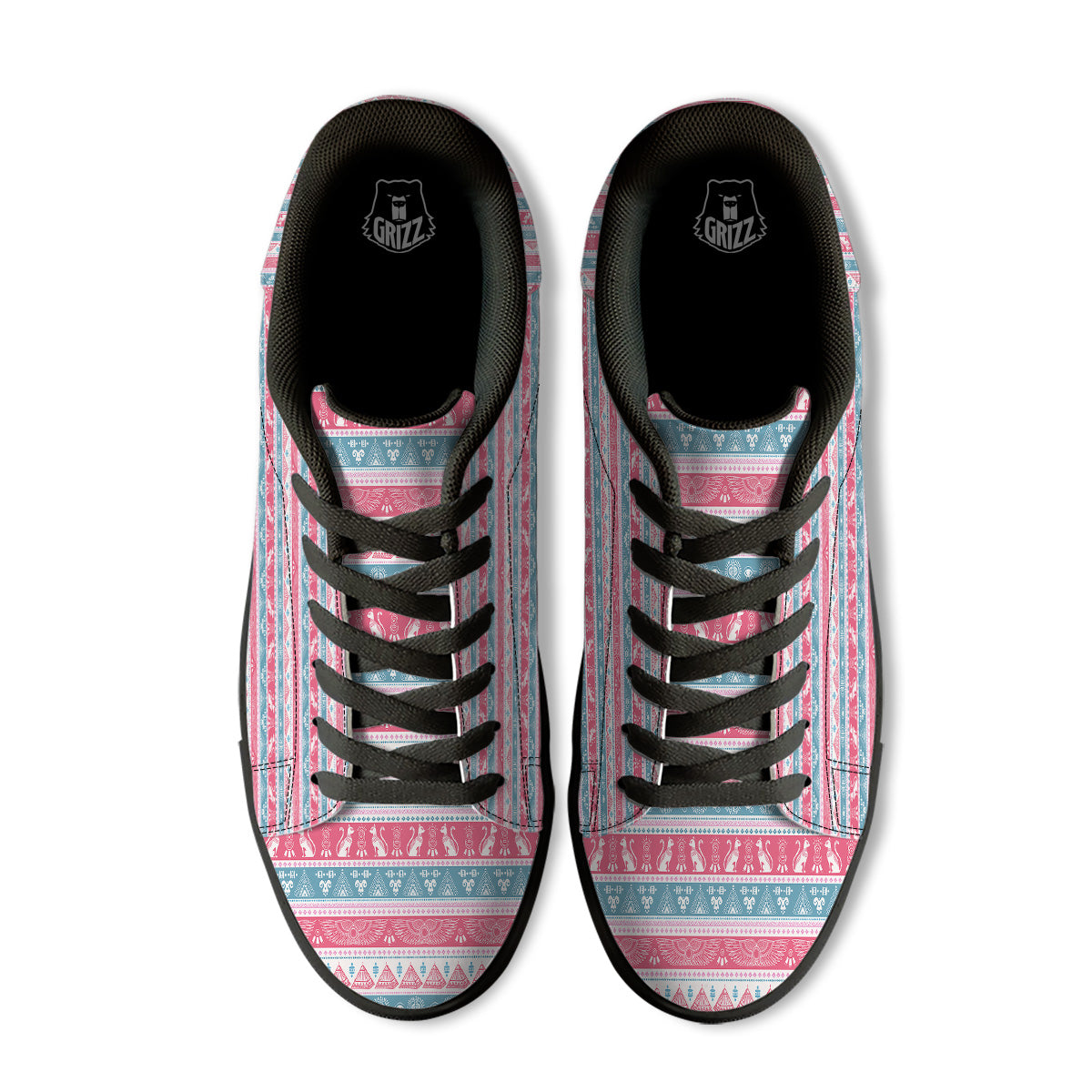 Tribal Ethnic Pink Blue Egypt Print Pattern Black Low Top Sneakers