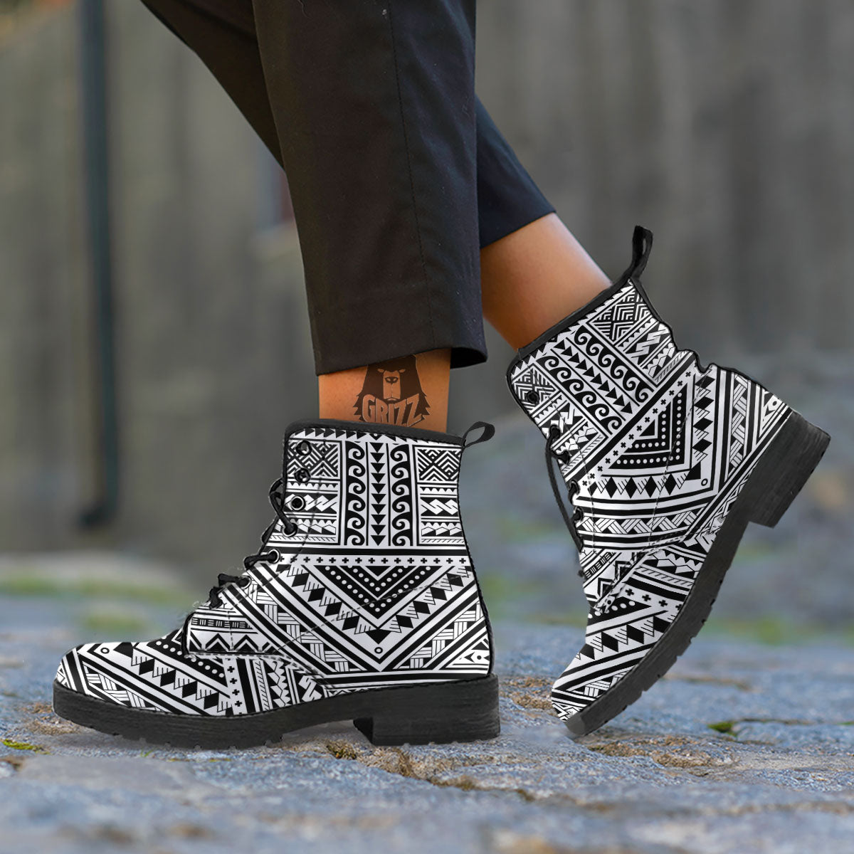 Tribal Maori Polynesian Tattoo Print Leather Boots
