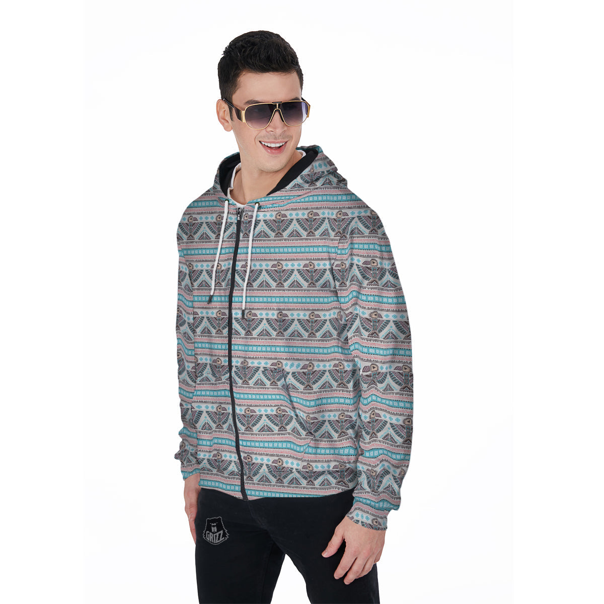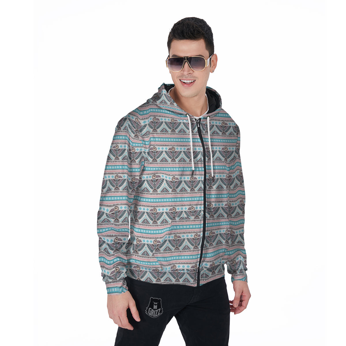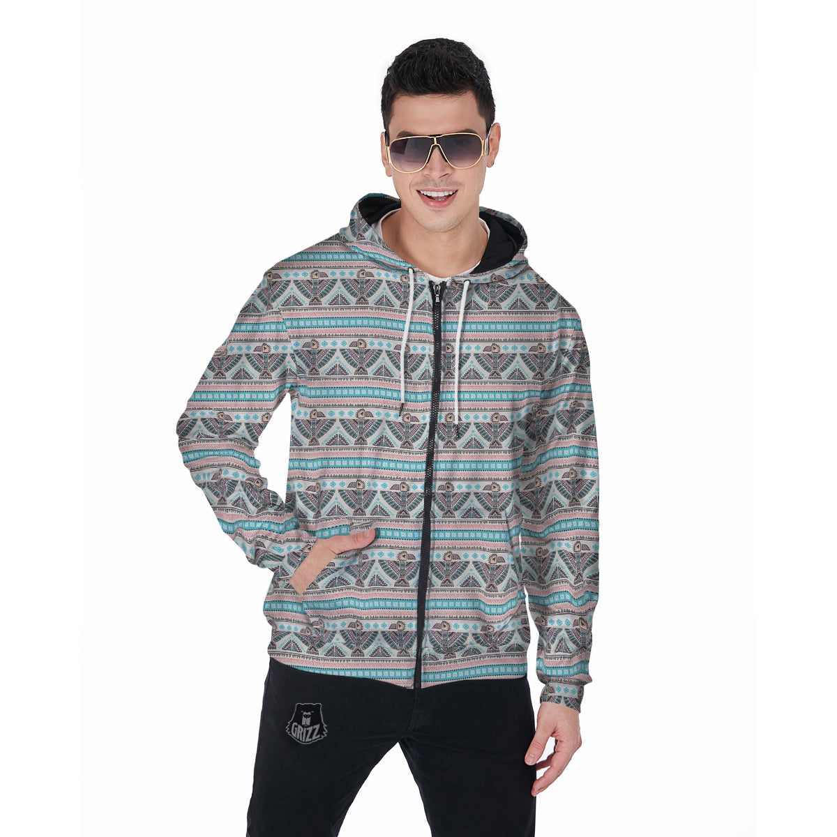 Tribal Native Indians American Aztec Navajo Print Men Zip Up Hoodie