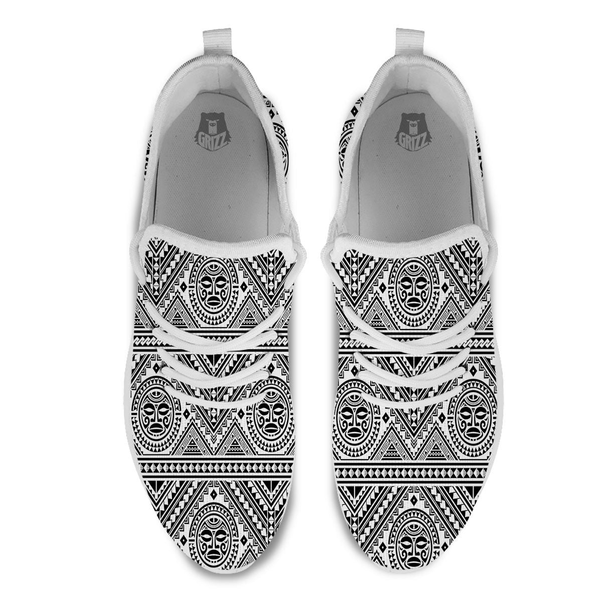 Tribal Tattoo Maori Polynesian Print White Athletic Shoes