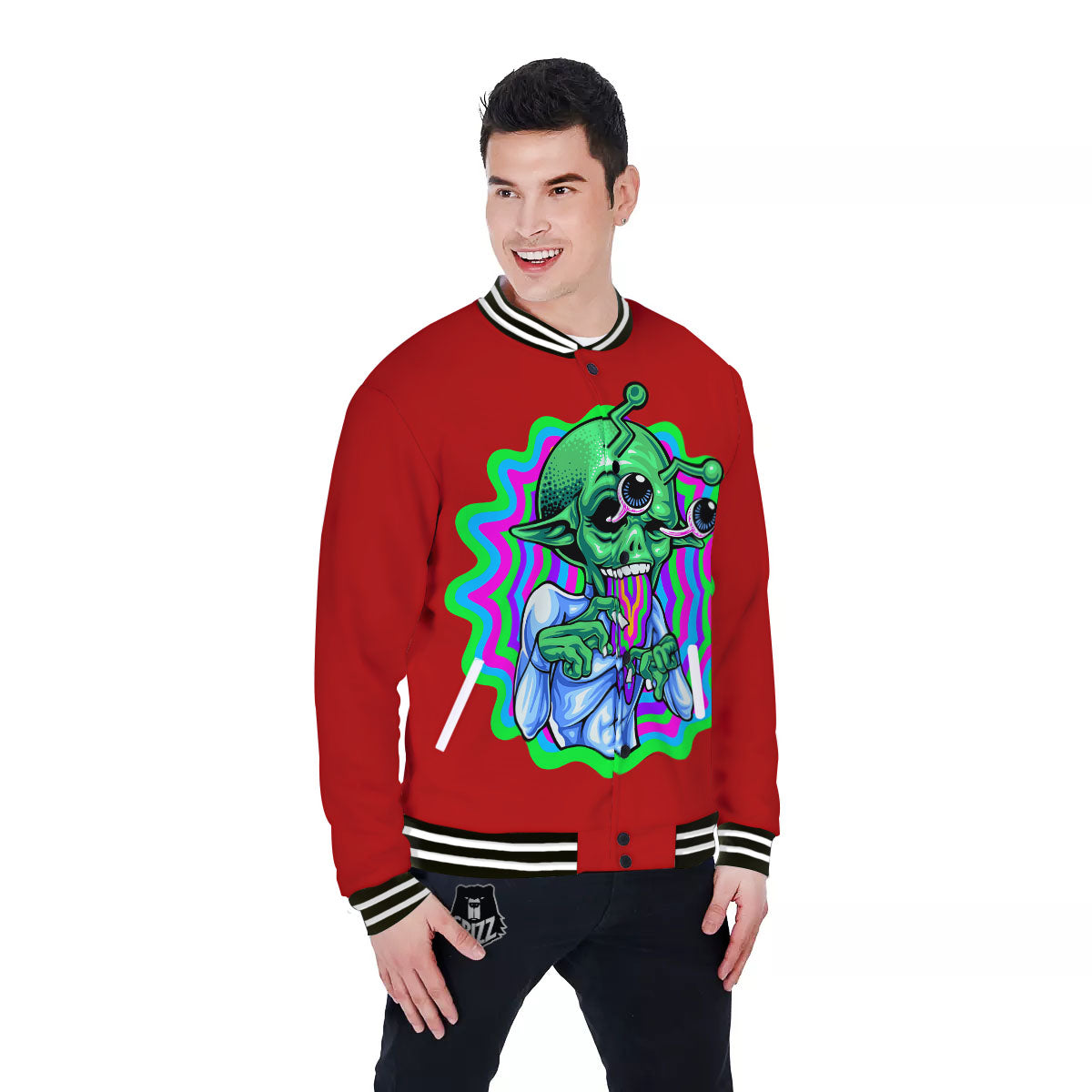 Looking for unique baseball jacket? Check out our Trippy Alien Crazy Print Baseball Jacket at Grizzshopping. Our walking baseball jacket are handcrafted to the highest quality standards and custom-made for you