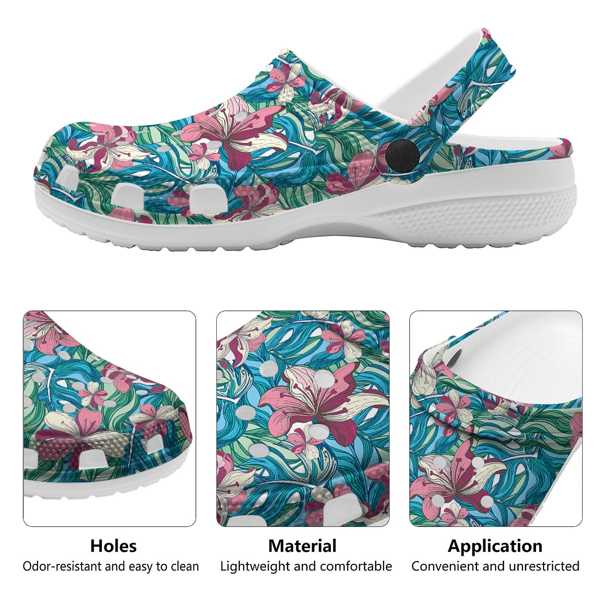 Looking for unique clog? Check out our Tropical Blossom Teal Pink Print Pattern Clog at Grizzshopping. Our clog are handcrafted to the highest quality standards and custom-made for you