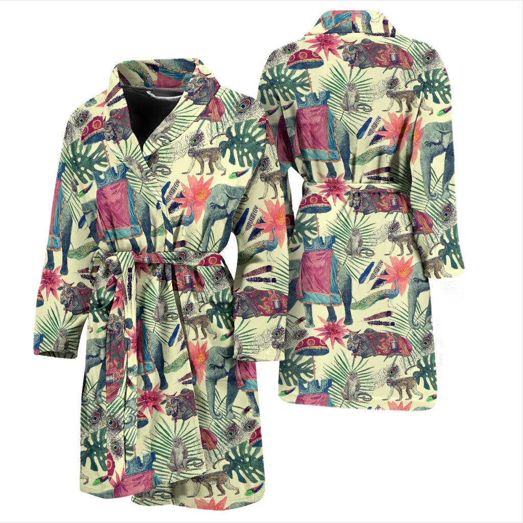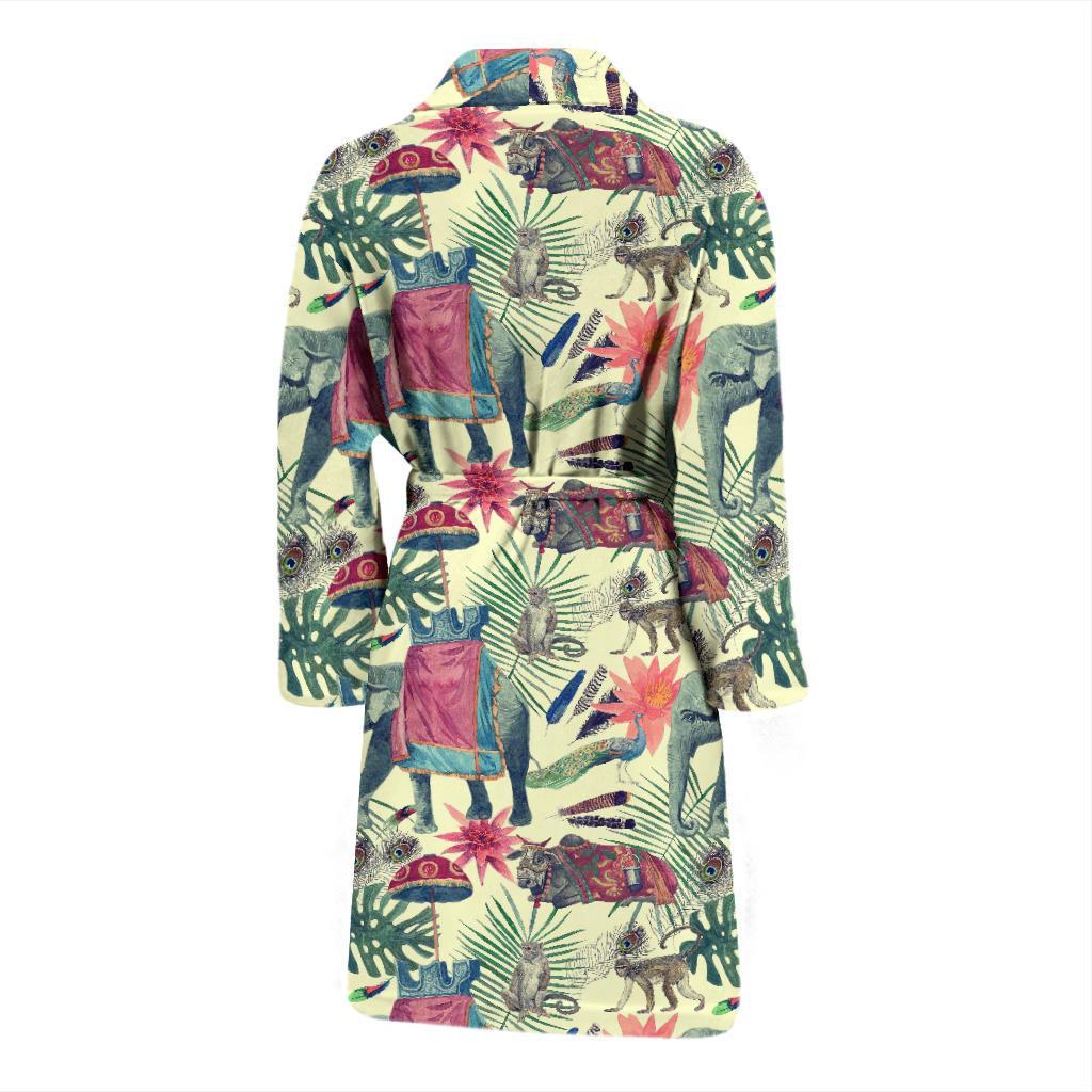 Tropical Elephant Print Men Long Robe