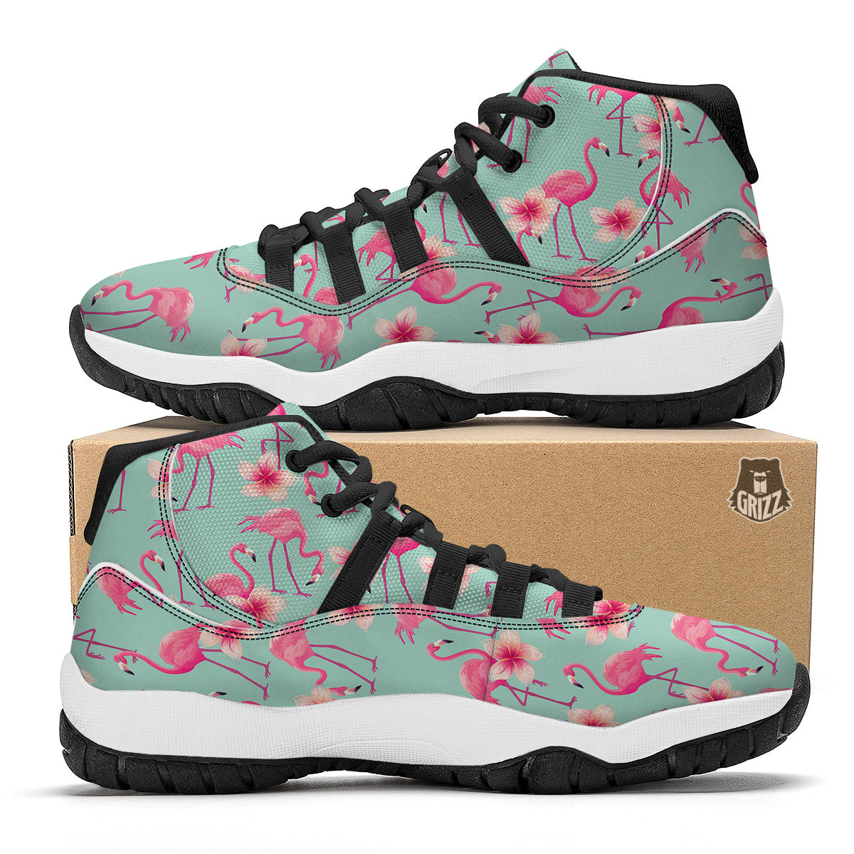 Tropical Flamingo Hibiscus Hawaiian Floral Pattern Print Black Bball Shoes
