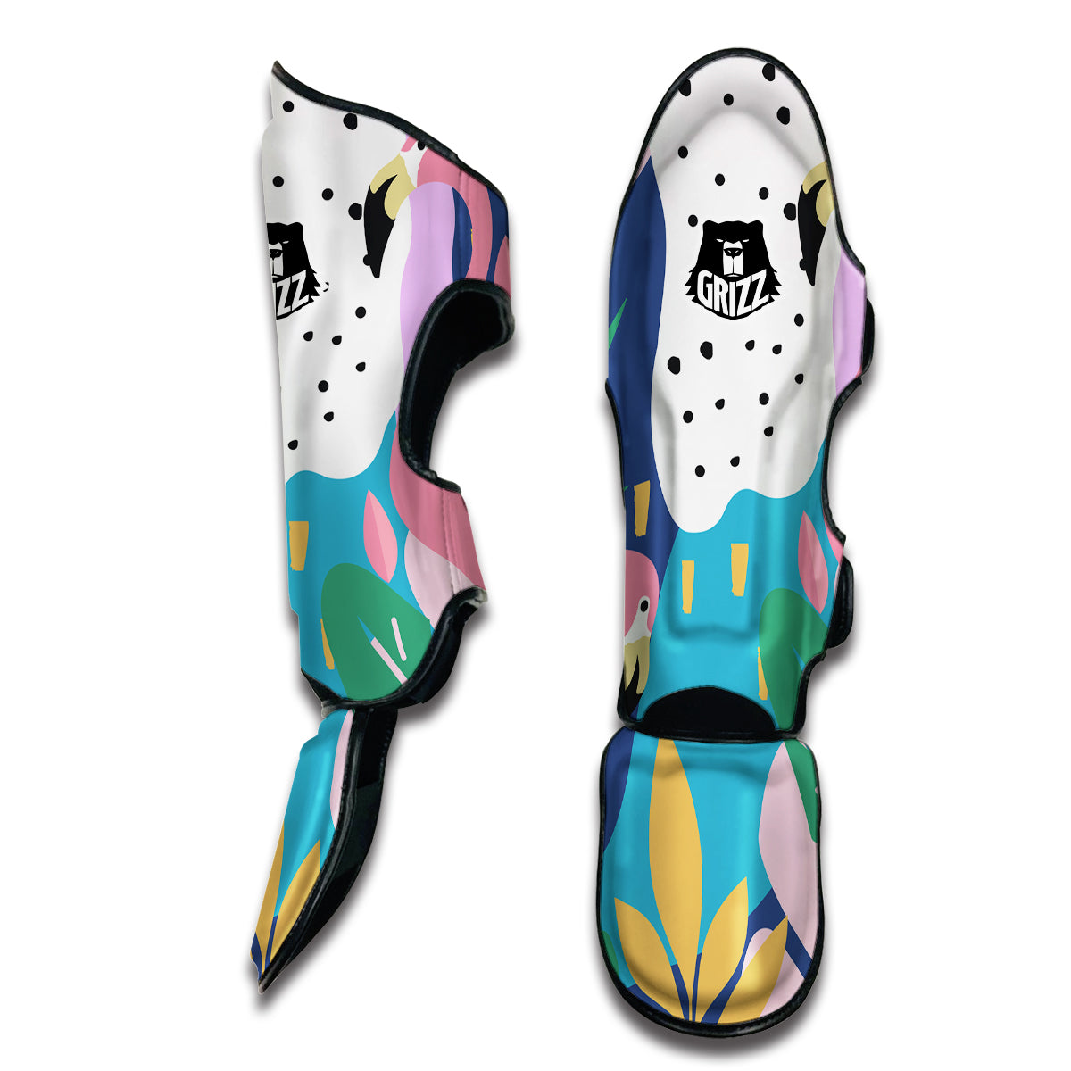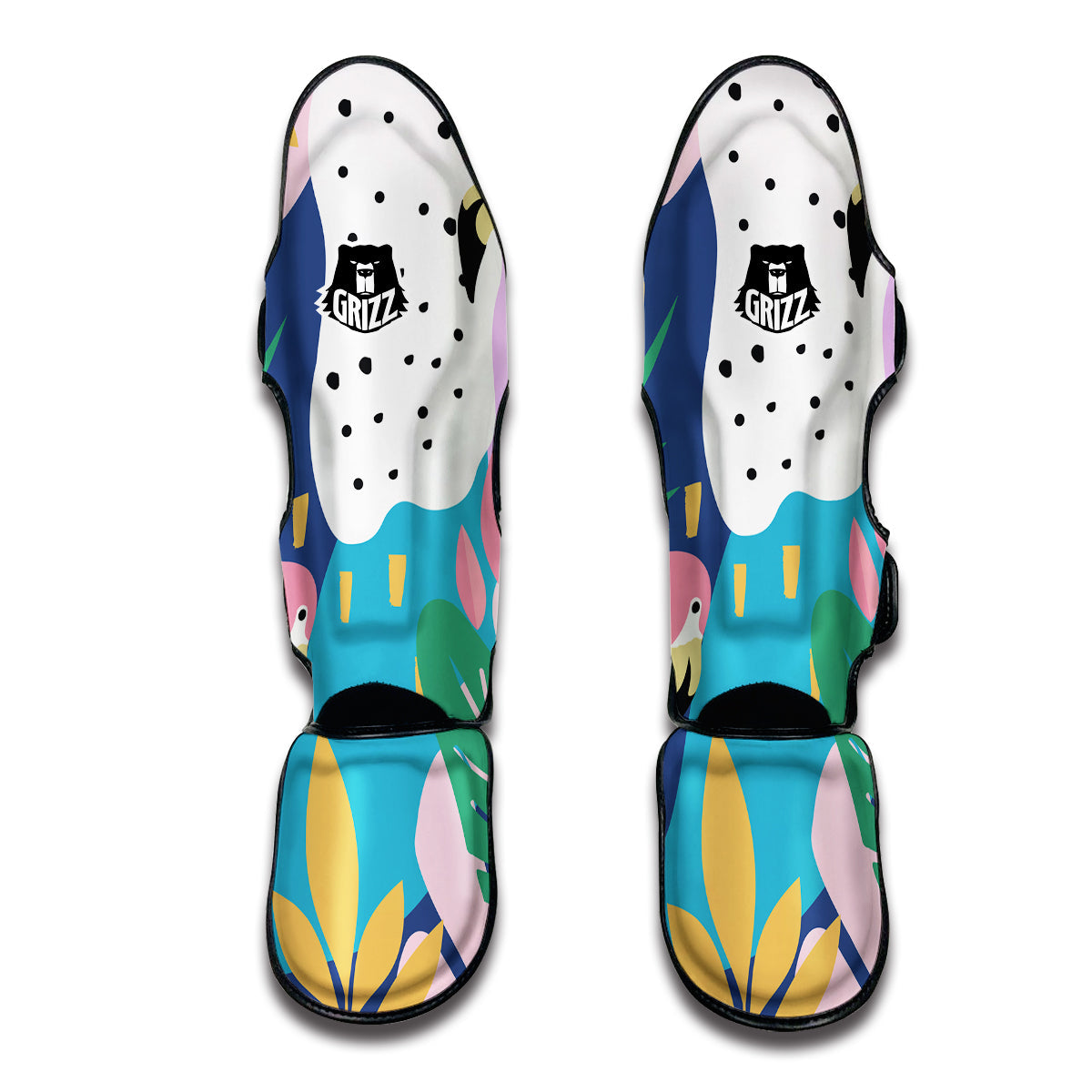 Tropical Flamingo Palm Leaves Hawaiian Pattern Print Muay Thai Shin Guards