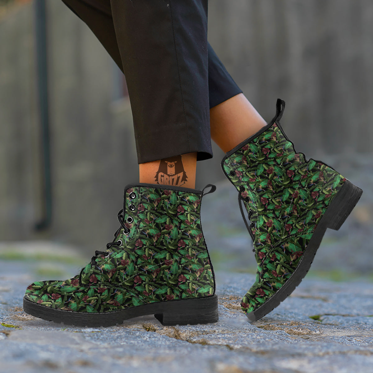 Tropical Hawaiian Dark Print Pattern Leather Boots