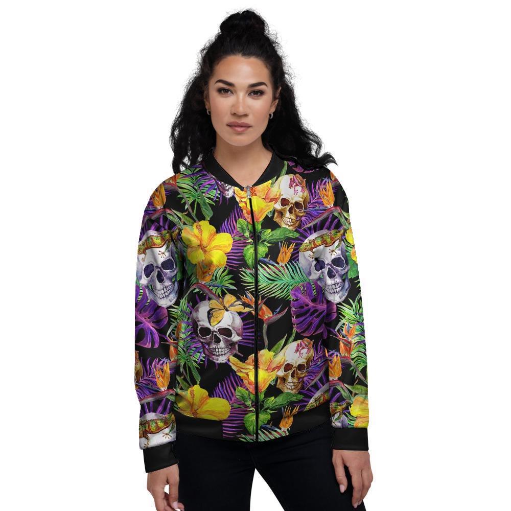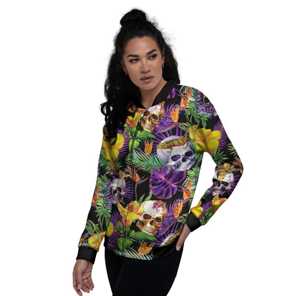 Tropical Hawaiian Skull Women's Bomber Jacket