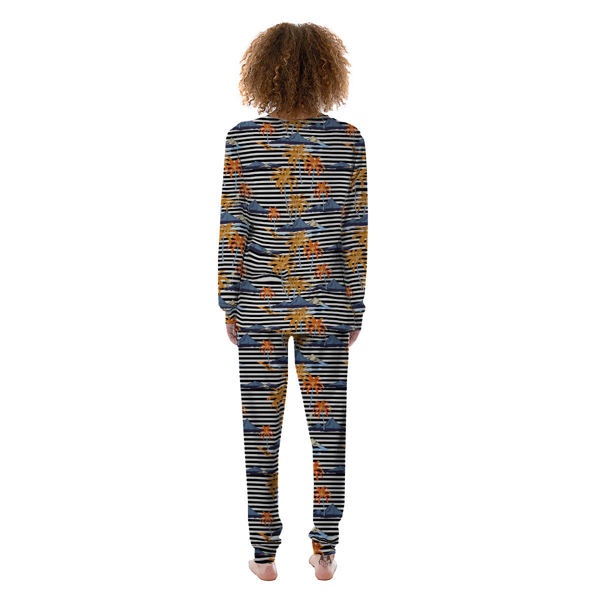Tropical Island And Stripes Print Pattern Women's Pajamas