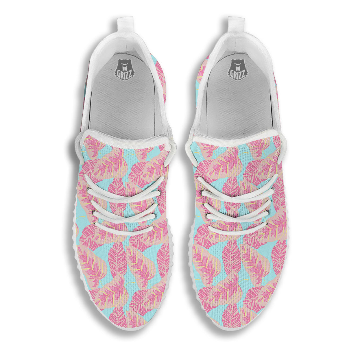 Tropical Leaf Pink And Teal Print Pattern White Walking Shoes