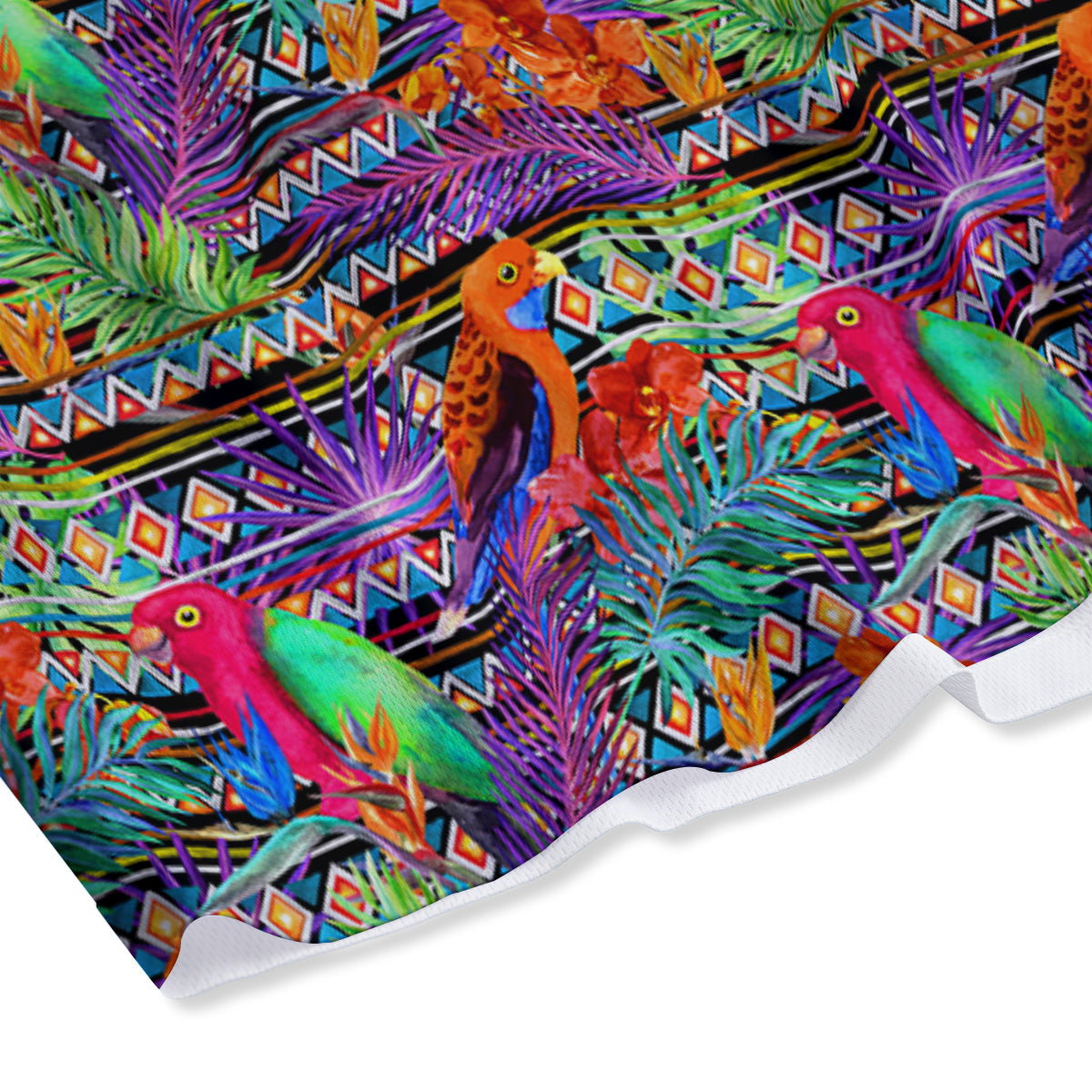 Tropical Leaves Exotic Bird Aztec Print Pattern Mesh Shorts