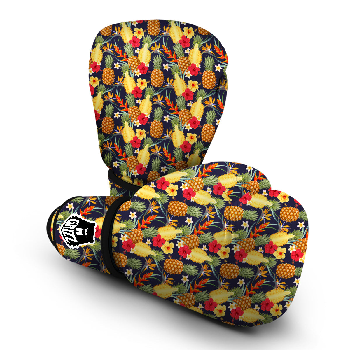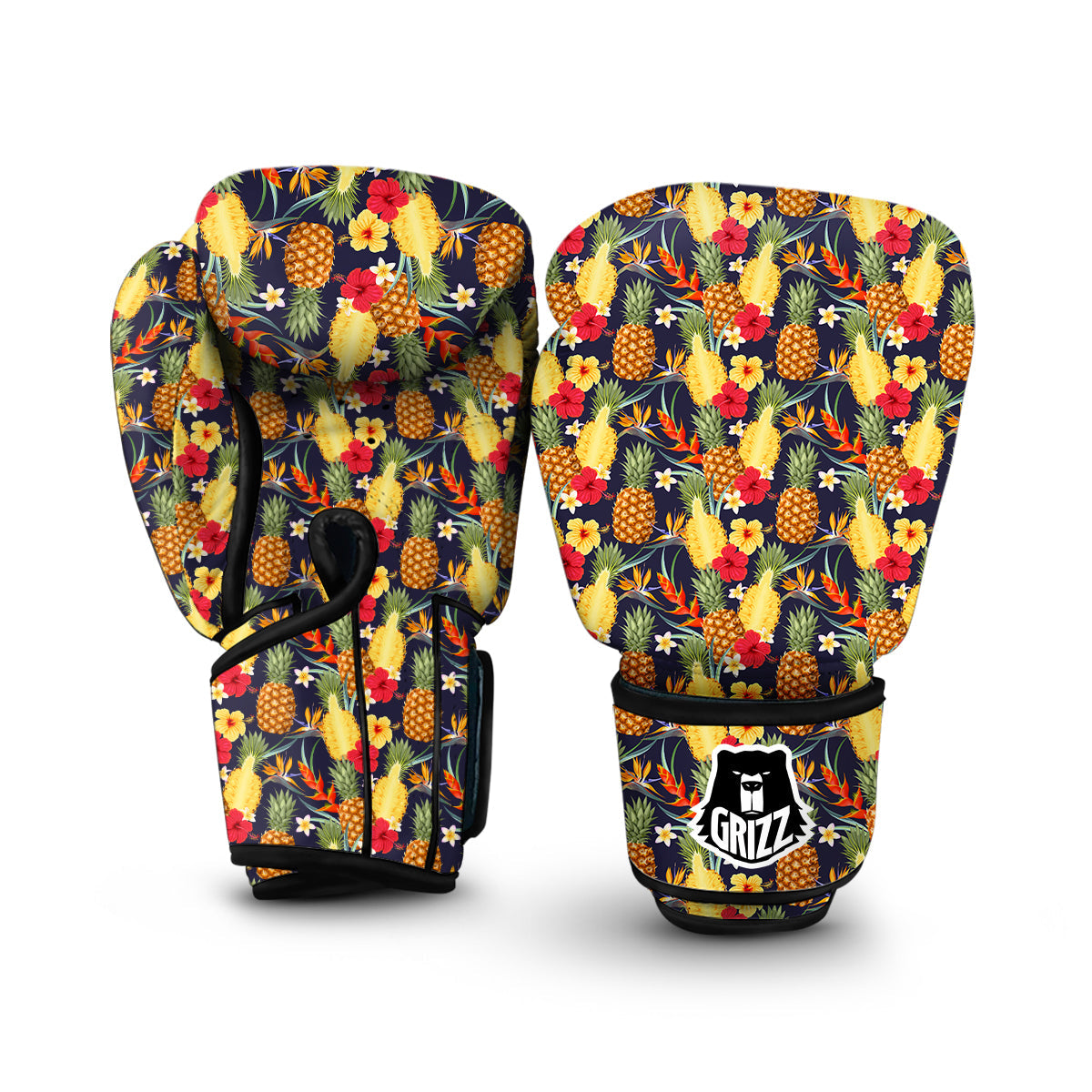 Tropical Mixed Hibiscus Pineapple Print Boxing Gloves