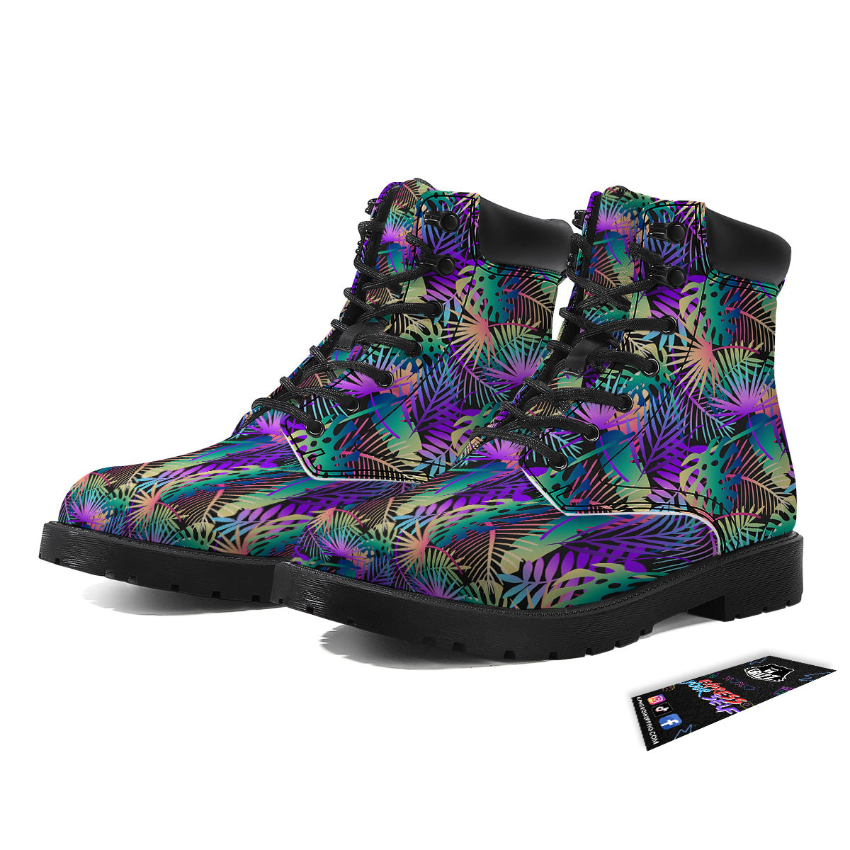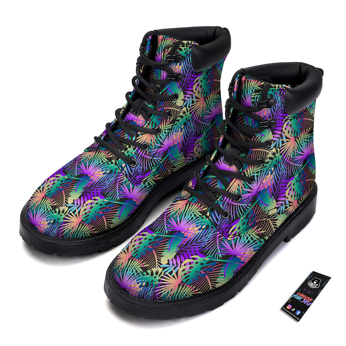 Tropical Neon Color And Palm Leaves Print Pattern Boots