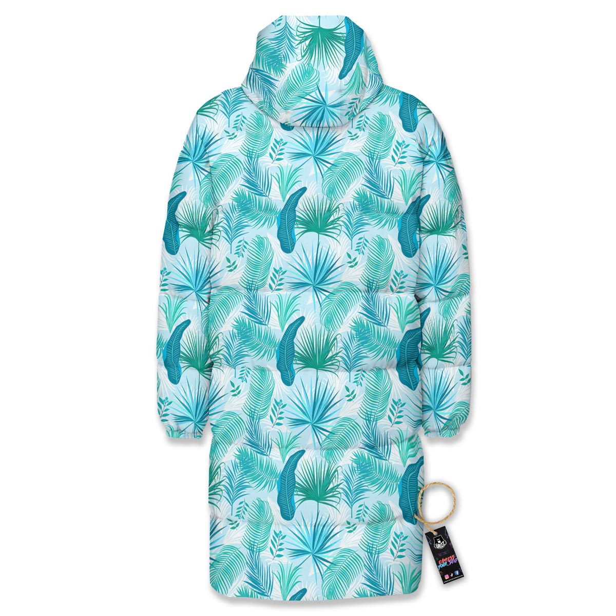 Tropical Teal Aloha Print Pattern Long Down Jacket