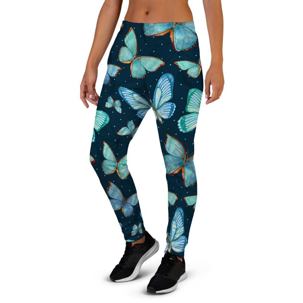 Turquoise Butterfly Print Women's Joggers