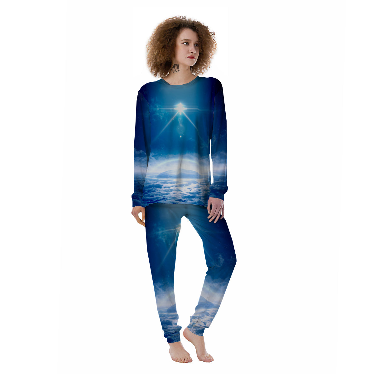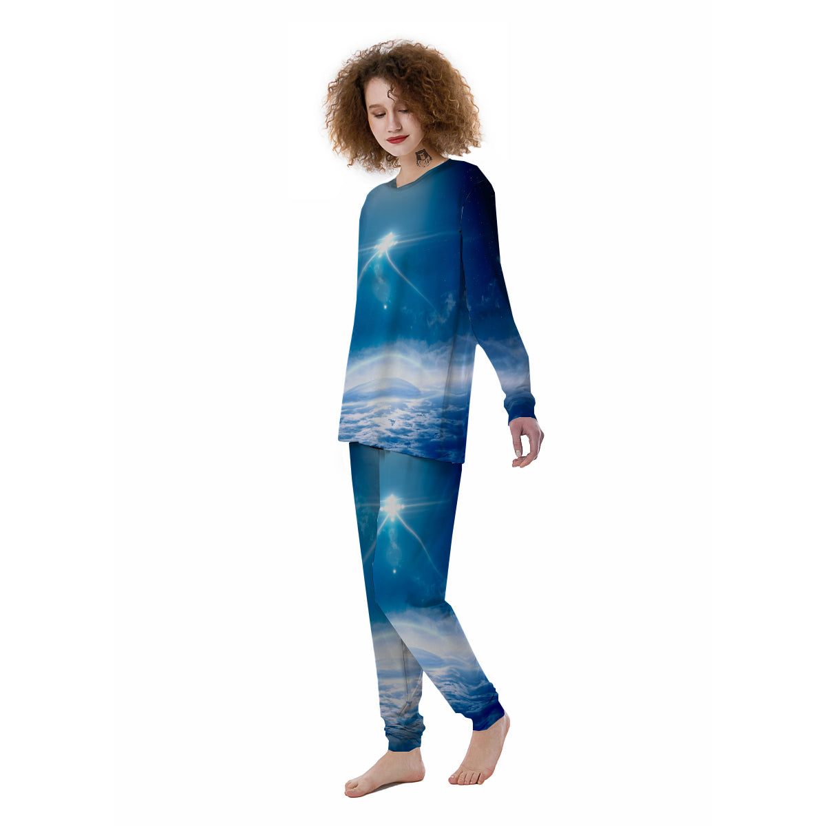 UFO On Planet Earth Print Women's Pajamas