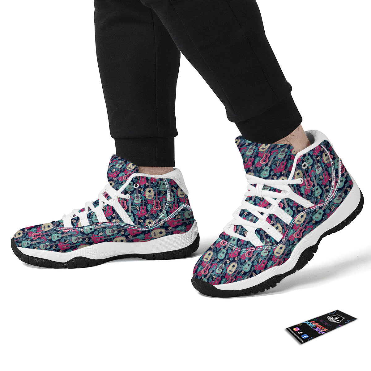 Ukulele And Hibiscus Print Pattern White Bball Shoes