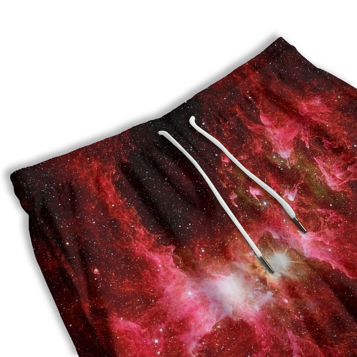 Universe Galaxy Space Red Stardust Print Men's Athletic Shorts