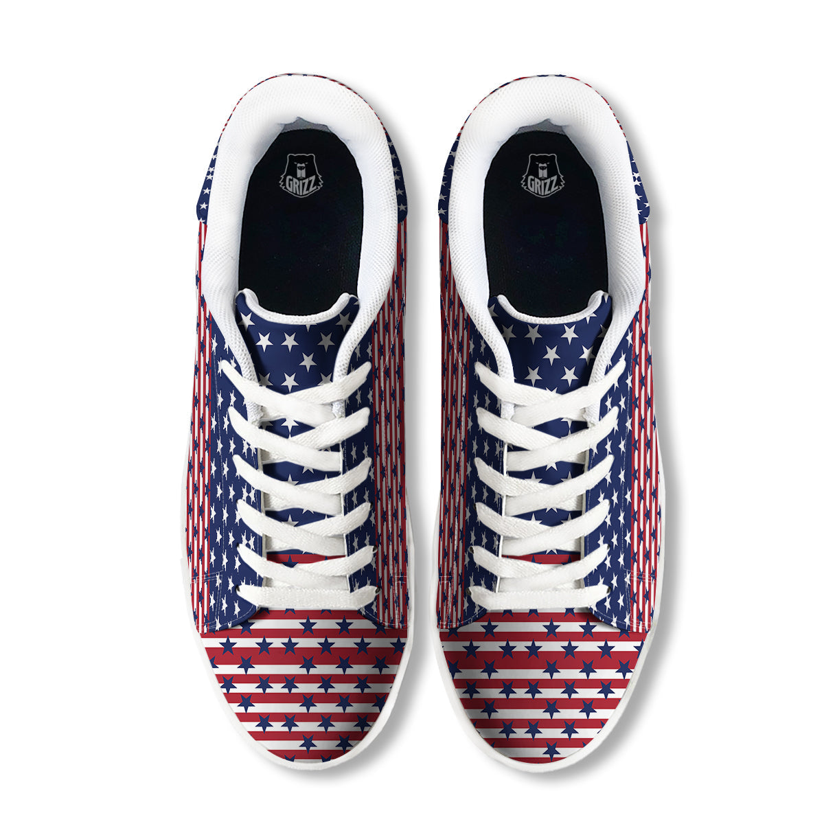 Looking for a unique low top shoes? Check out our USA Blue And White Star Print Pattern White Low Top Sneakers at Grizzshopping. Our low top sneakers are handcrafted to the highest quality standards that custom made for you