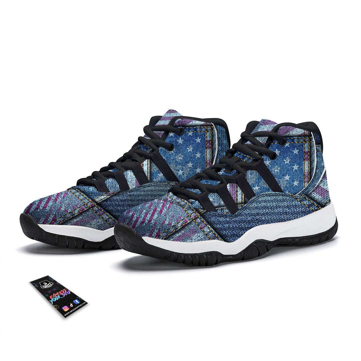 USA Denim Patchwork 4th of July Print Black Bball Shoes