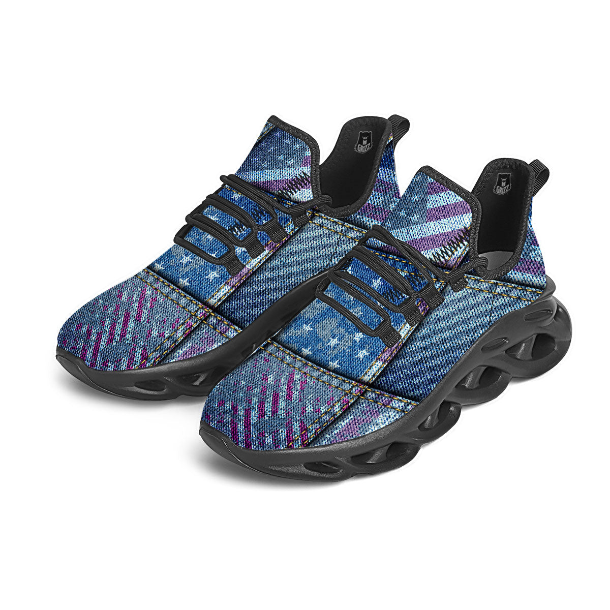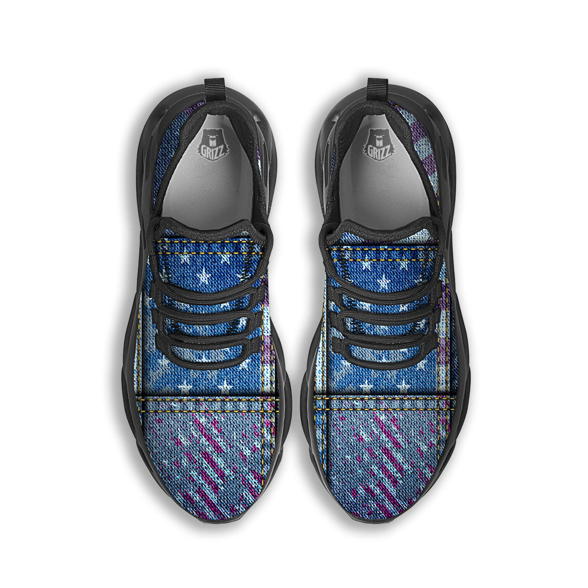 Looking for unique running shoes? Check out our USA Denim Patchwork 4th of July Print Black Running Shoes at Grizzshopping. Our running shoes are handcrafted to the highest quality standards and custom-made for you