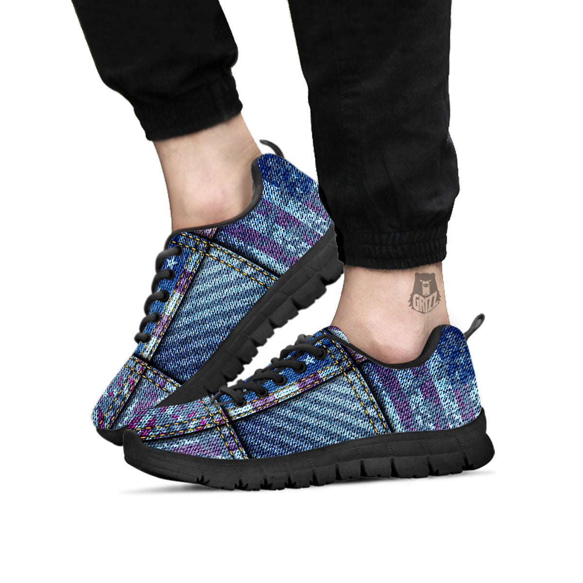 Looking for a unique sneaker? Check out our USA Denim Patchwork 4th of July Print Black Sneakers at Grizzshopping. Our sneaker are handcrafted to the highest quality standards that custom made for you