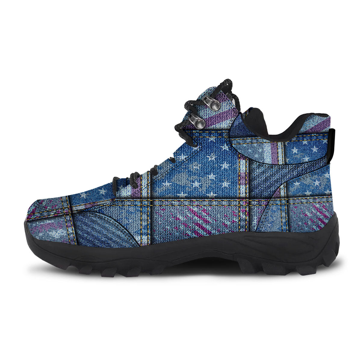 USA Denim Patchwork 4th of July Print Hiking Shoes