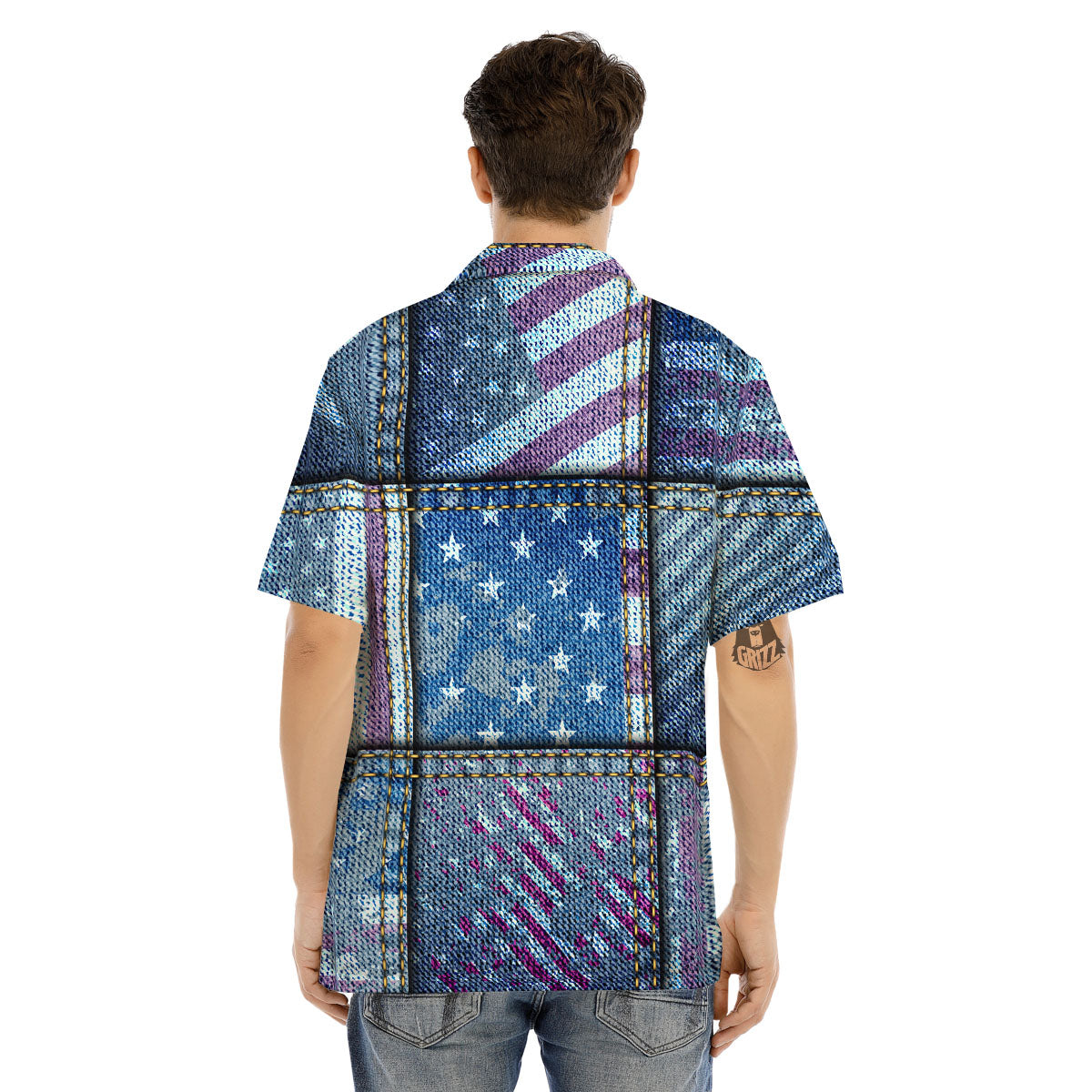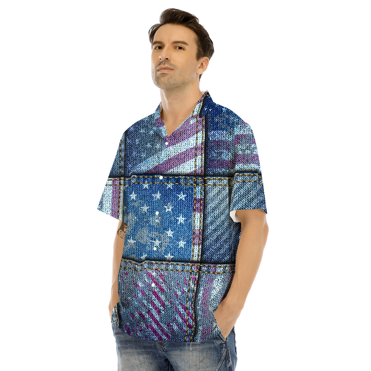 USA Denim Patchwork 4th of July Print Men's Hawaiian Shirt