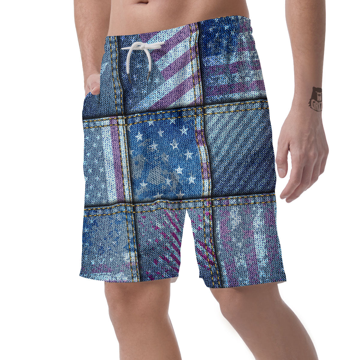 USA Denim Patchwork 4th of July Print Men's Shorts