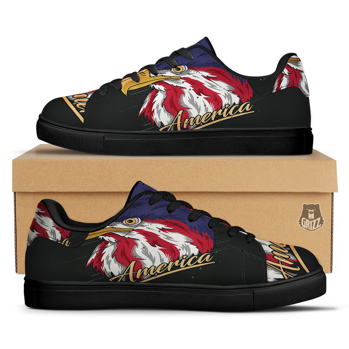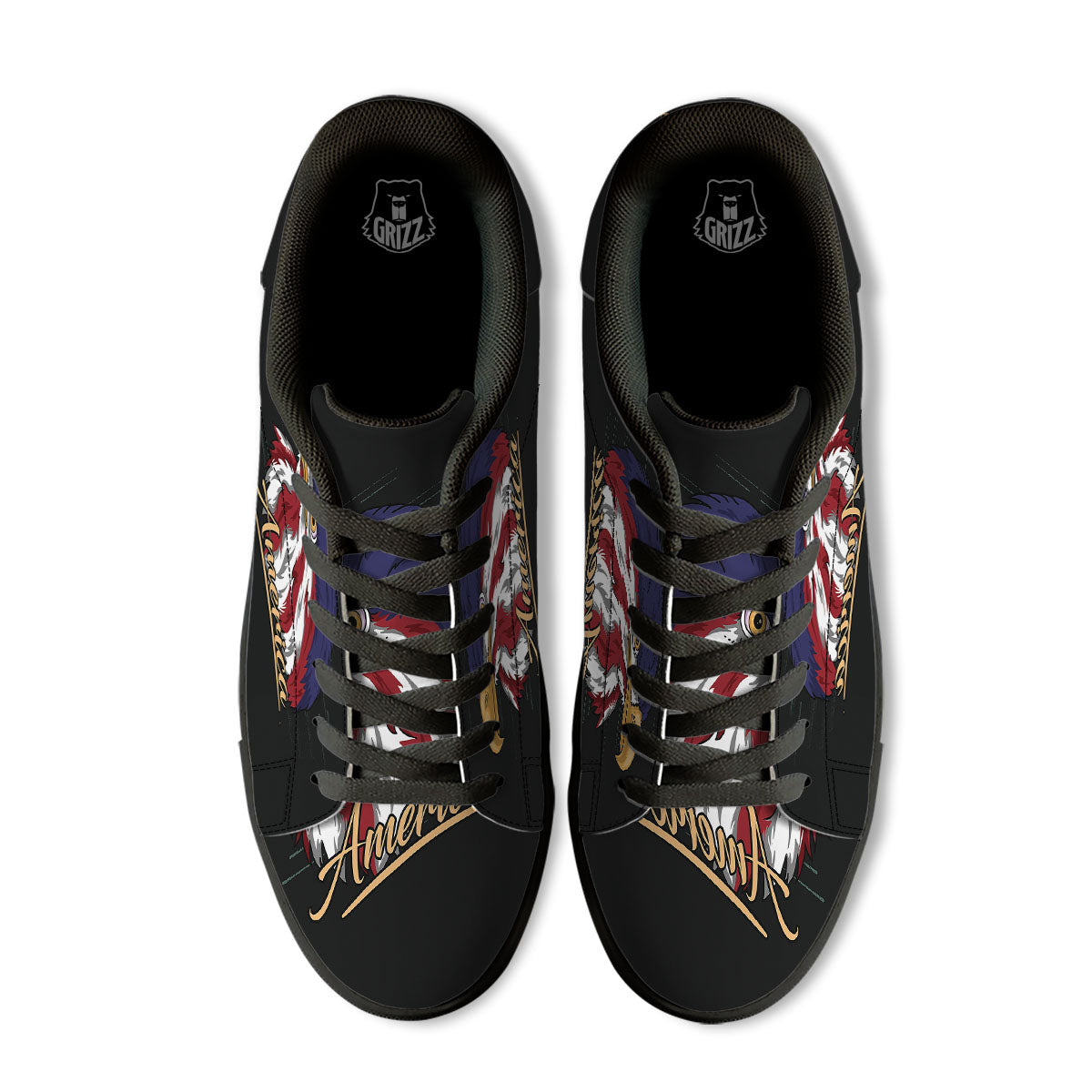 USA Eagle Patriotic Print Black Low Top Sneakers