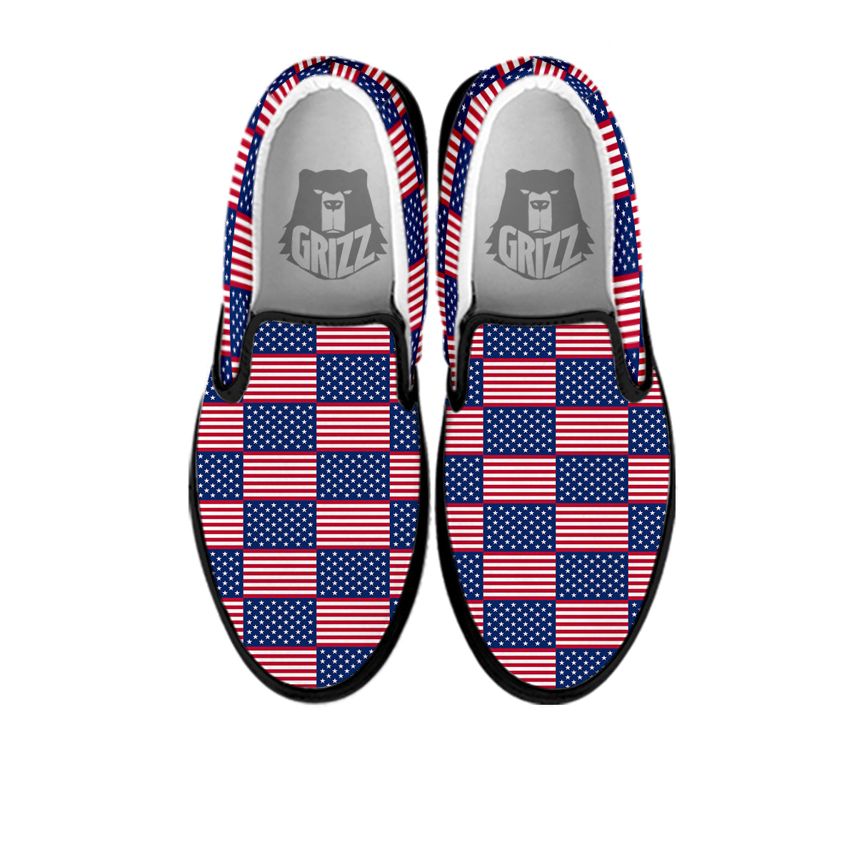 Looking for a unique Slip On Sneakers? Check out our USA Flag 4th of July Print Pattern Black Slip On Shoes at Grizzshopping. Our Slip On Sneakers are handcrafted to the highest quality standards that custom made for you