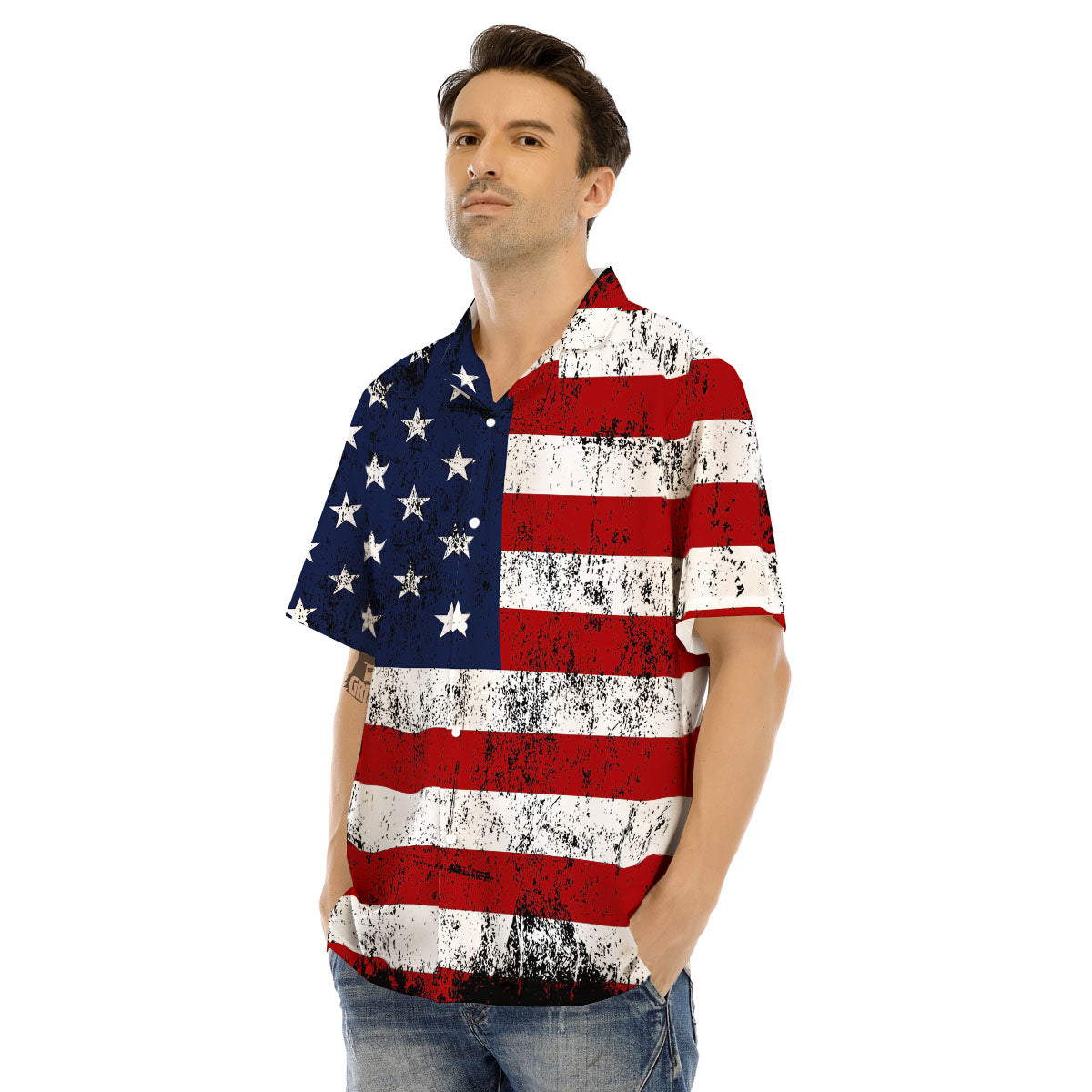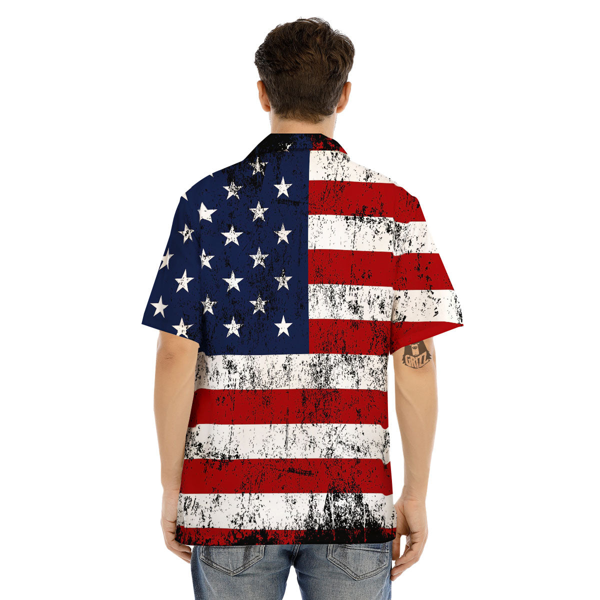 USA Flag Grunge Print Men's Hawaiian Shirt