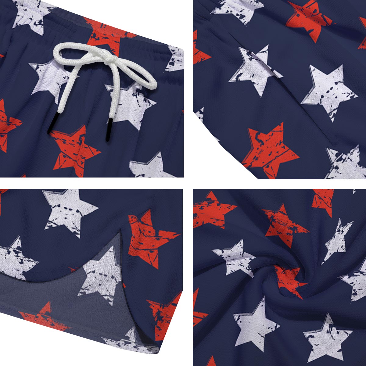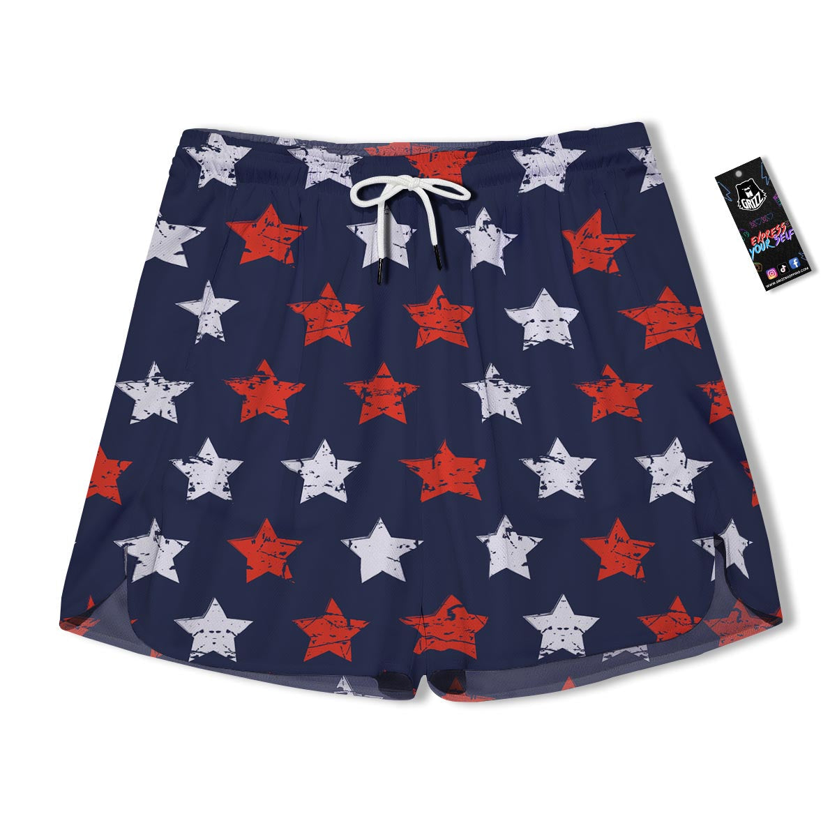 USA Star Blue And Red Print Pattern Men's Running Shorts