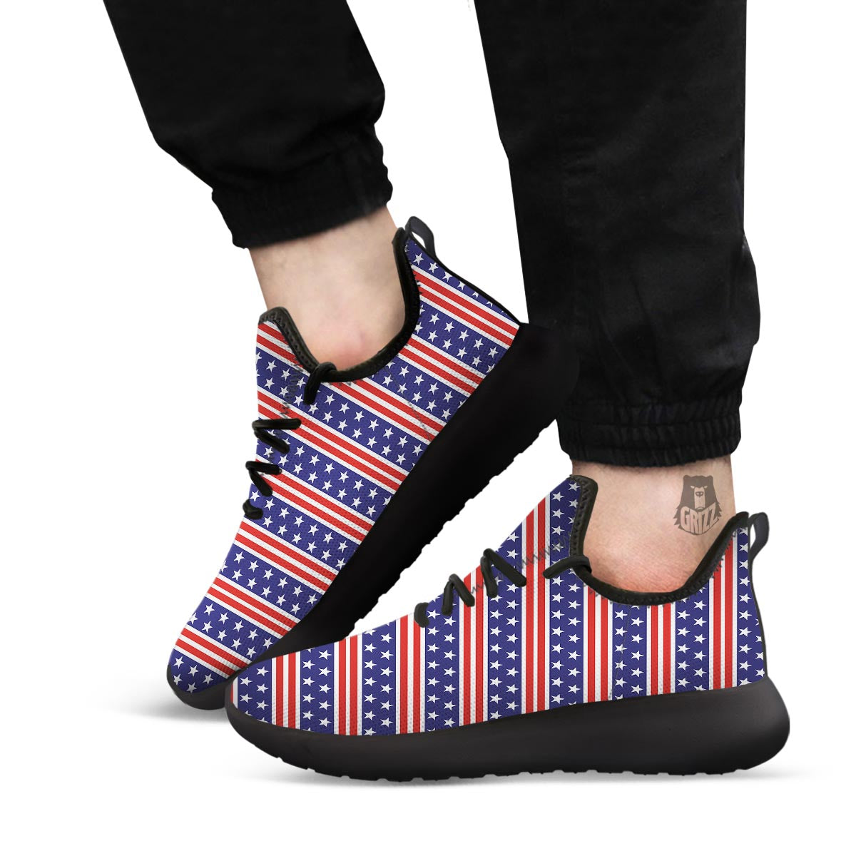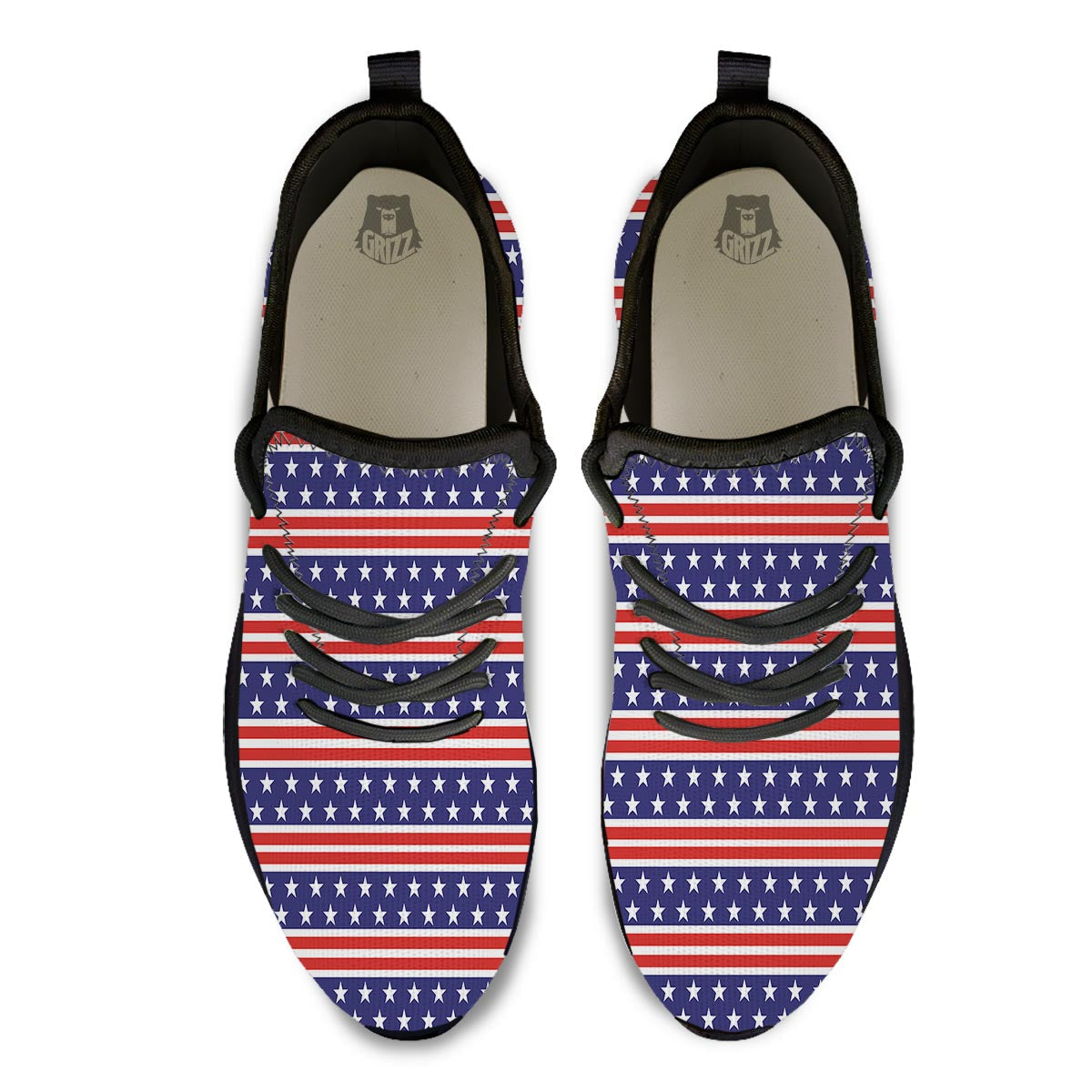USA Star Red Striped Print Pattern Black Athletic Shoes