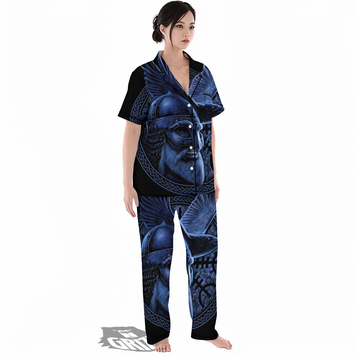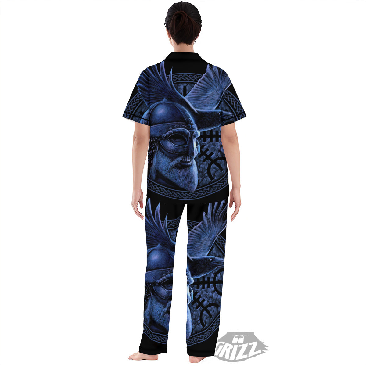 Viking God Odin And Crow Blue Print Women's Pajamas Set