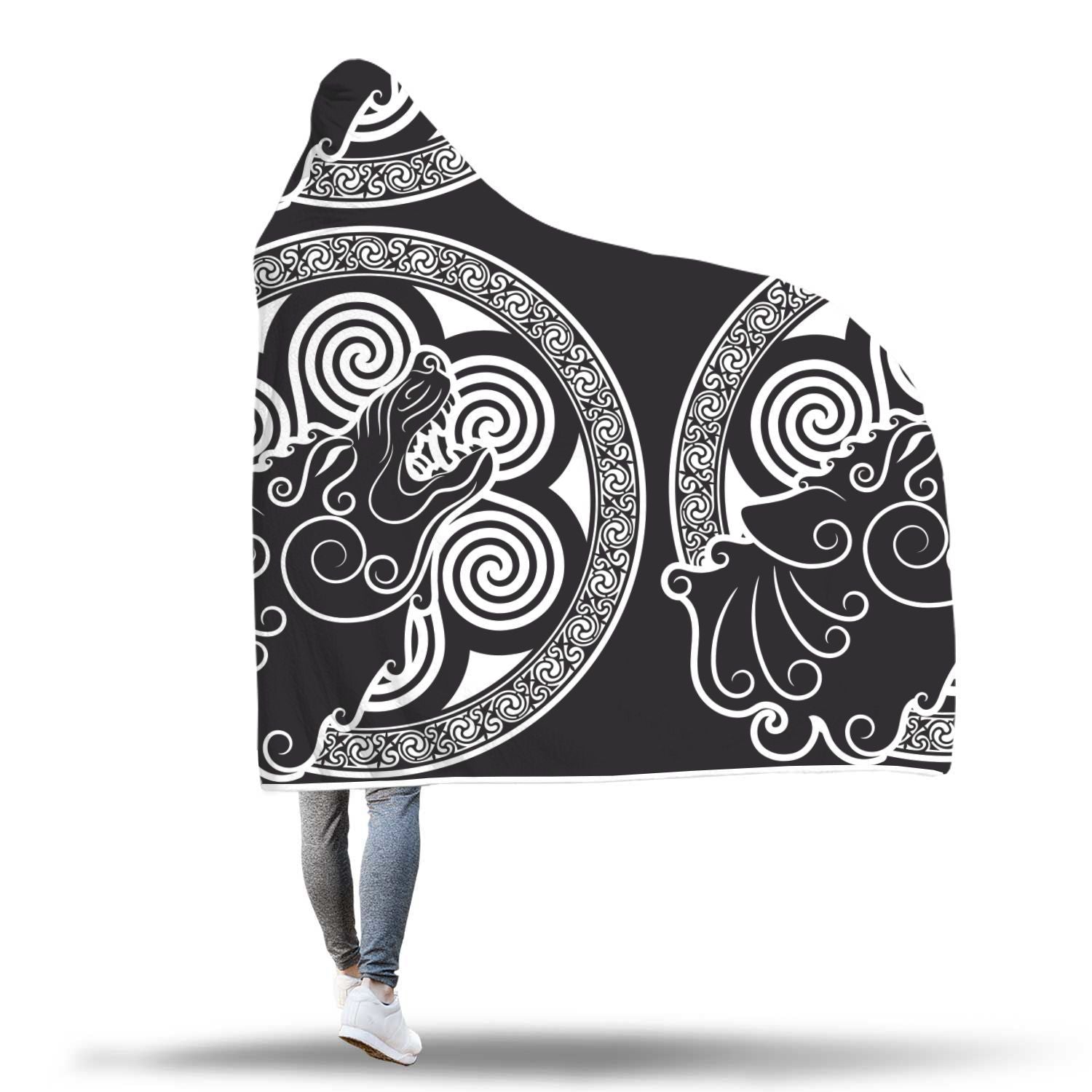 Viking Odin Fenrir Wolf Print Hooded Blanket