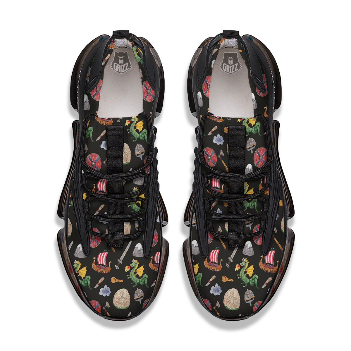 Vikings Watercolor Cartoon Style Print Pattern Black Gym Shoes