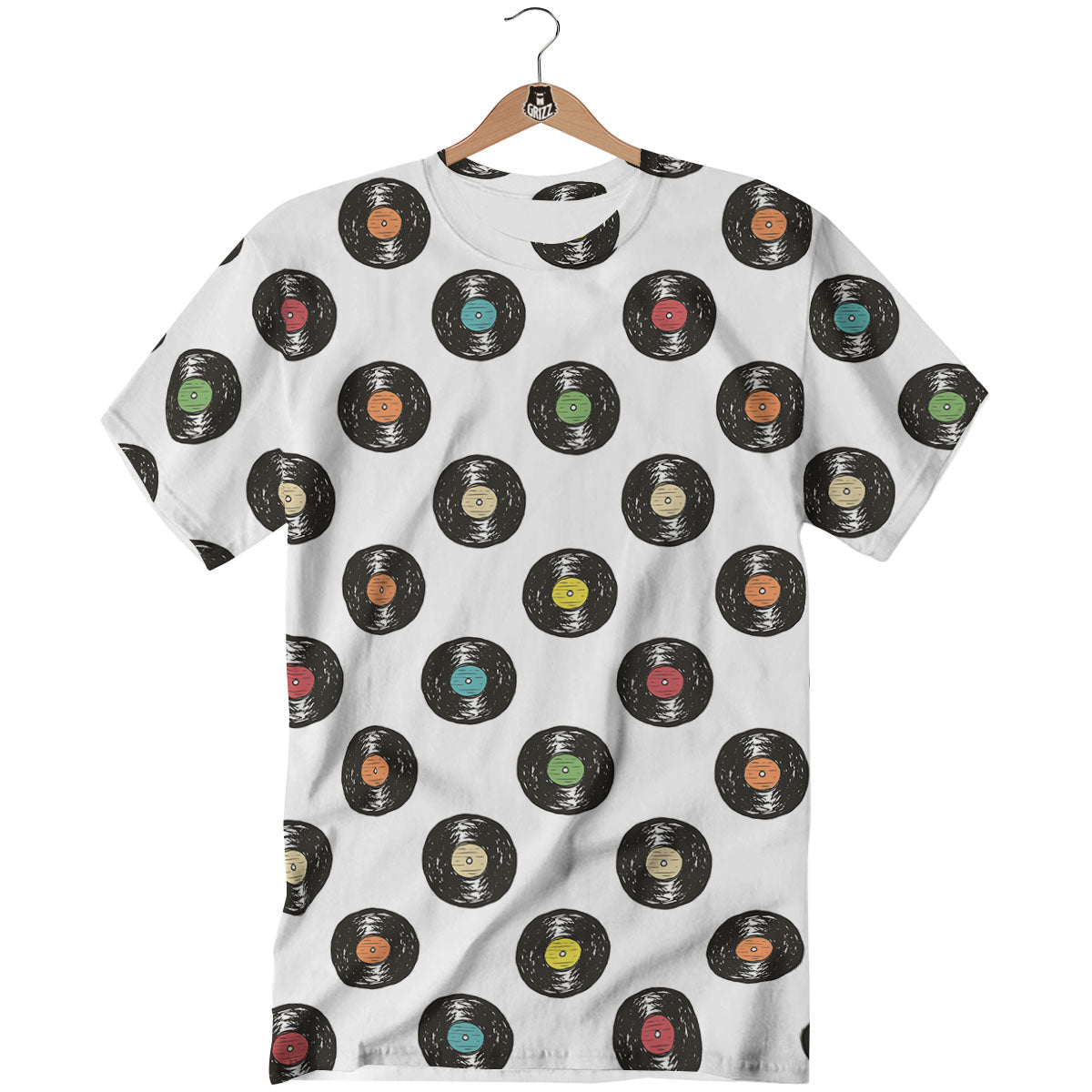 Vinyl Record Hand Drawn Print Pattern T-Shirt