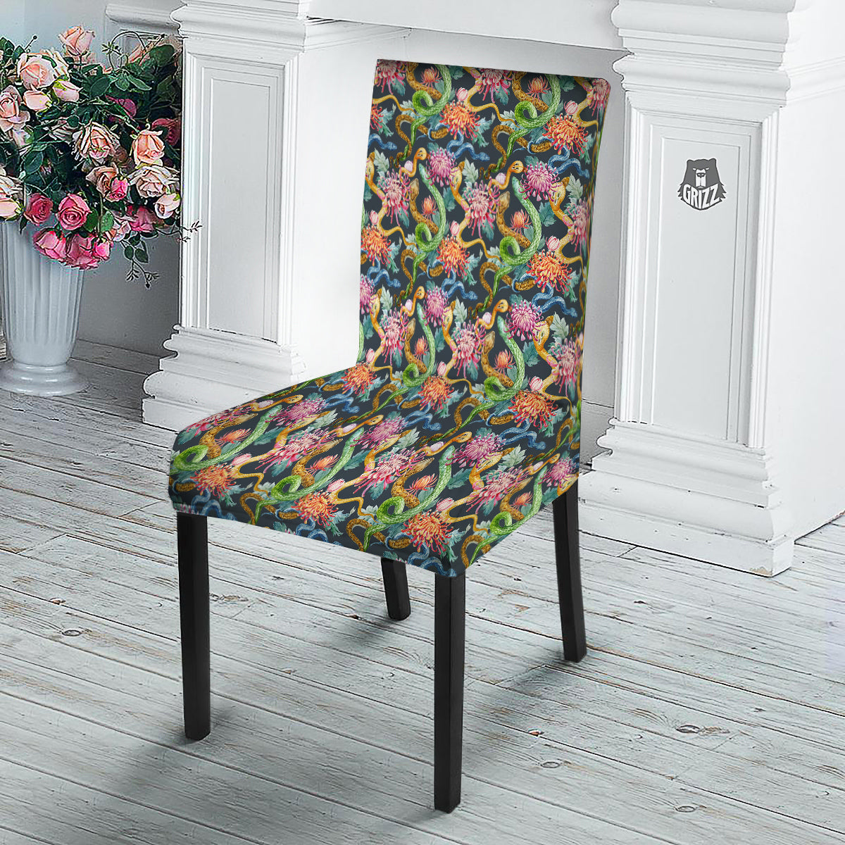 Watercolor Snake Chrysanthemum Flowers Print Pattern Dining Chair Slipcover