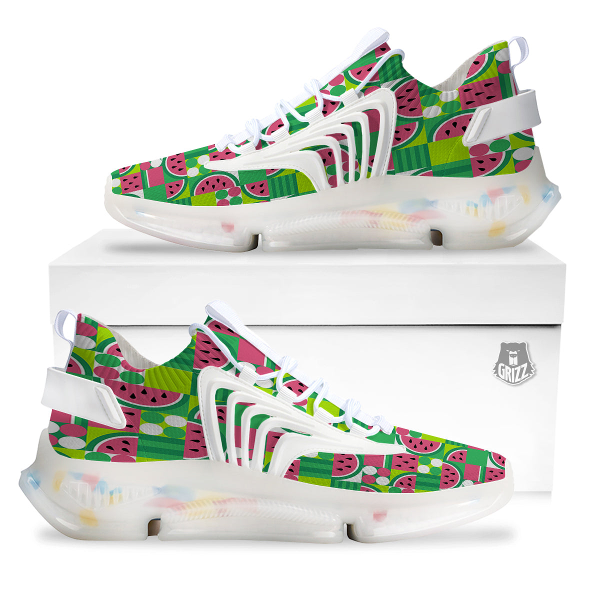 Watermelon Fruit Slice Geometric Print White Gym Shoes